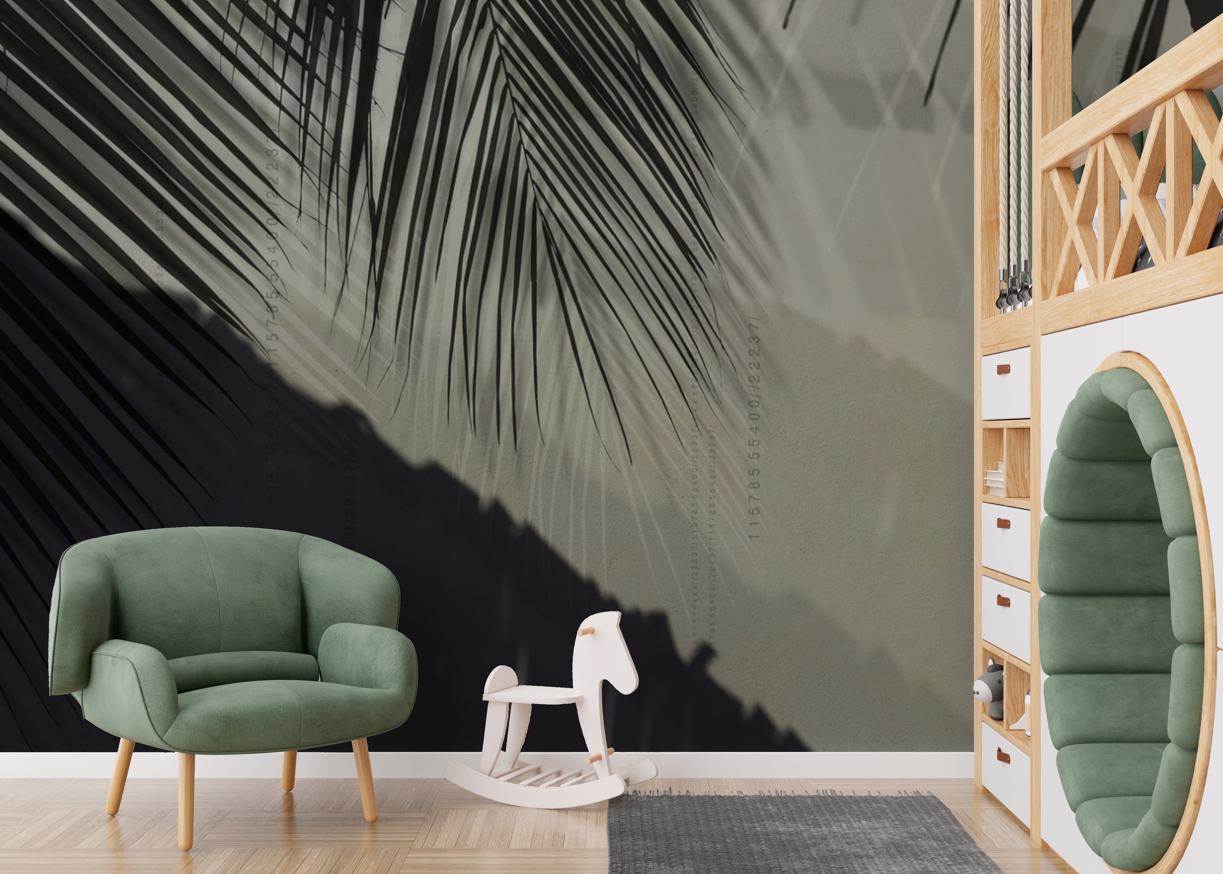 Artistic palm leaf shadow wallpaper for refined interiors.