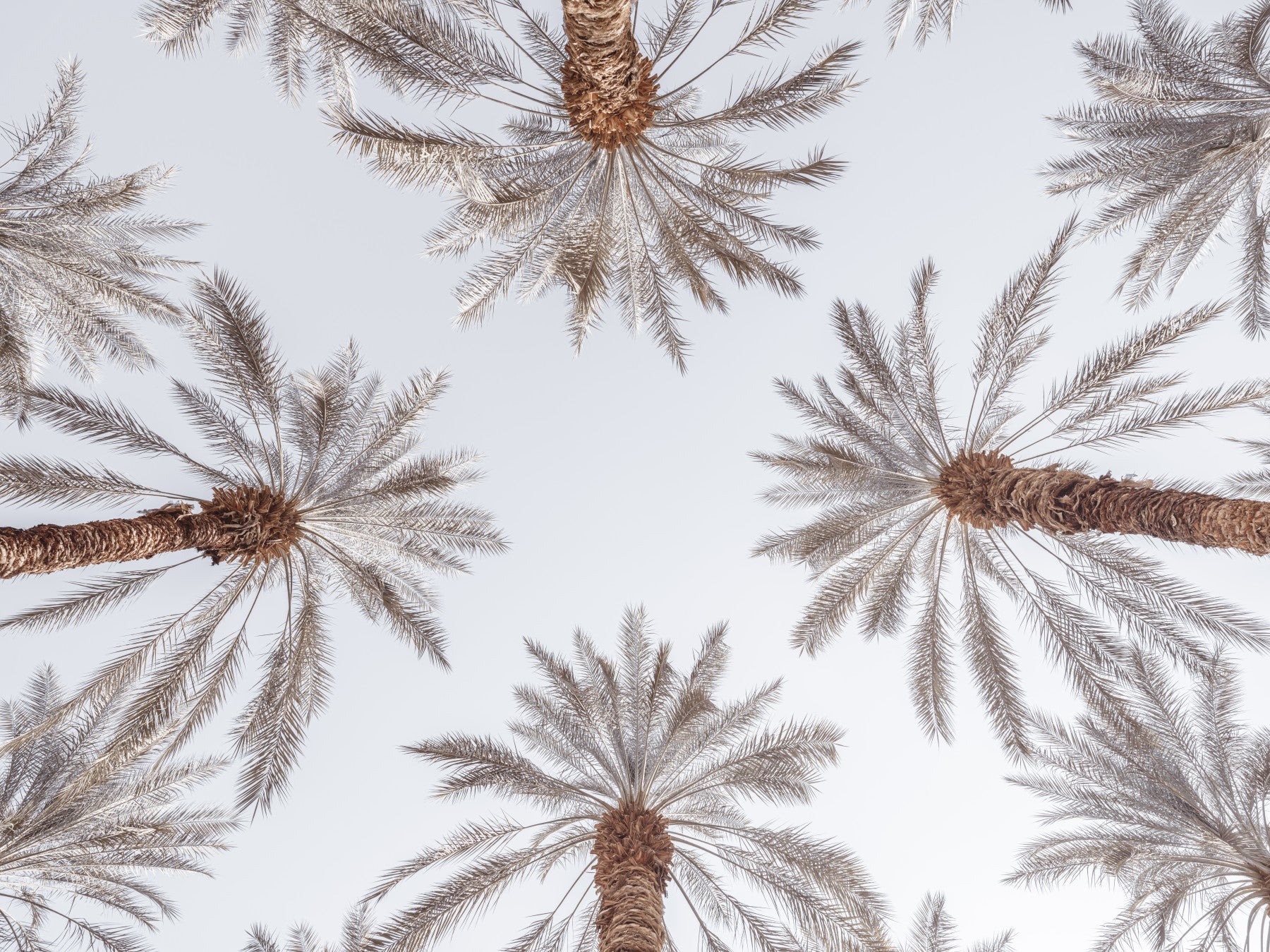 The Palm Tops Wall Mural gives your home a feeling of natural peace and quiet beauty. This mural wallpaper shows a beautiful, artistic view looking up at the tops of several palm trees. The gentle colors and serene atmosphere are a simple way to get a unique and relaxing feel for any room. This high-quality wallpaper for walls is ideal for a living room, bedroom, or home office.