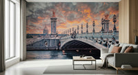 Parisian Bridge Sunset Wall Mural