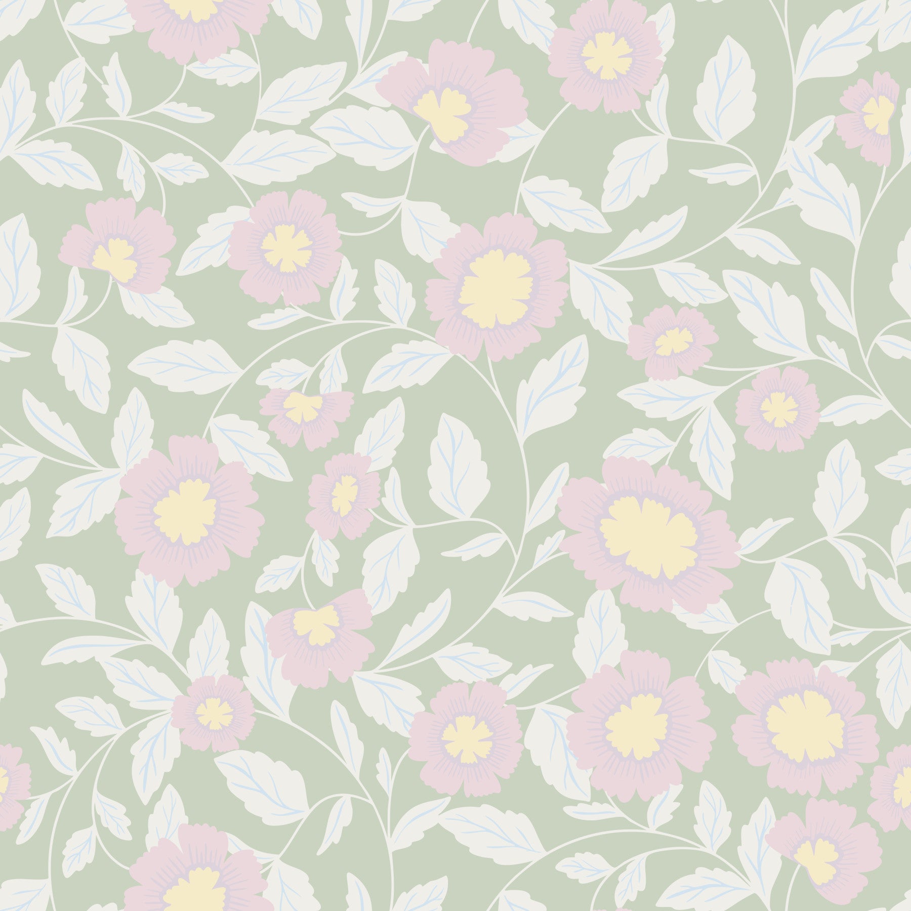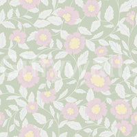 Embrace a gentle ambiance with this floral wallpaper for walls, featuring a charming pattern of pink blossoms and soft leaves against a serene green backdrop. This design offers a soothing effect, perfect for creating a relaxing atmosphere in bedrooms or nurseries. Its delicate colour palette and classic floral style easily complement both modern and traditional interiors, adding a touch of timeless elegance and natural beauty to your home. The subtle details enhance the overall aesthetic, making it a versatile choice for any room seeking a light and airy feel.