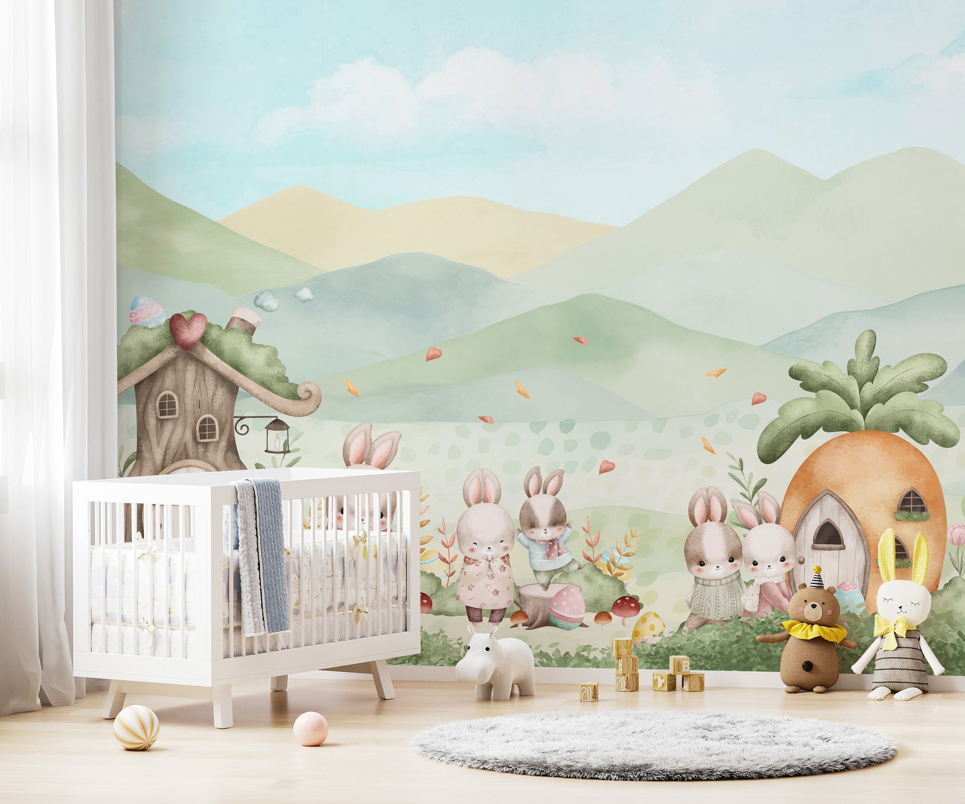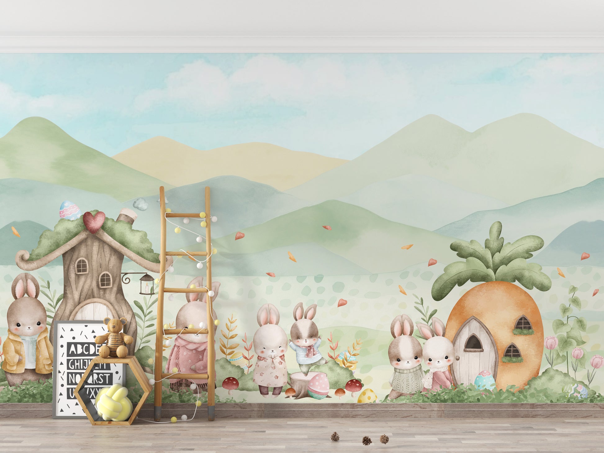 Looking for a cute Easter wallpaper for your nursery or kitchen? This Pastel Bunny Easter Mural Wallpaper is just what you need. With soft pastel colors, playful bunnies, and Easter eggs, it’s perfect for adding a fun spring vibe to small spaces. It’s a peel and stick wallpaper that’s easy to apply and safe for renters. Whether you're decorating a kids’ room or updating your walls for Easter, this removable Easter wallpaper makes it simple. If you want bunny wallpaper that feels fresh and festive, this Easter-themed wallpaper is a great choice for your home this spring.