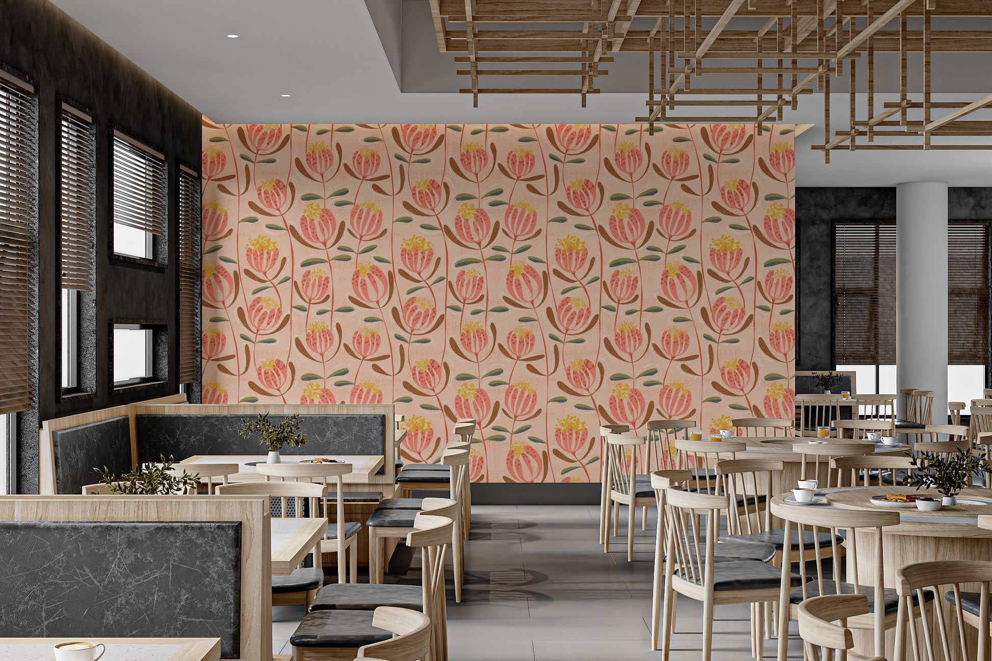 Wrap your walls in the gentle embrace of spring with this floral peach wallpaper, a pattern that captures the whimsical charm of Scandi design. Each panel is a canvas, showcasing peach-toned blooms unfurling against a soft, textured backdrop. It’s a visual melody, where nature's quiet beauty speaks volumes, creating a serene haven in your home. This print whispers stories of blooming gardens and serene afternoon walks, infusing rooms with a sense of renewal. Imagine the delicate dance of petals on a warm breeze adorning your walls—this wallpaper is a testament to timeless botanical artistry, offering a touch of serenity to every corner.