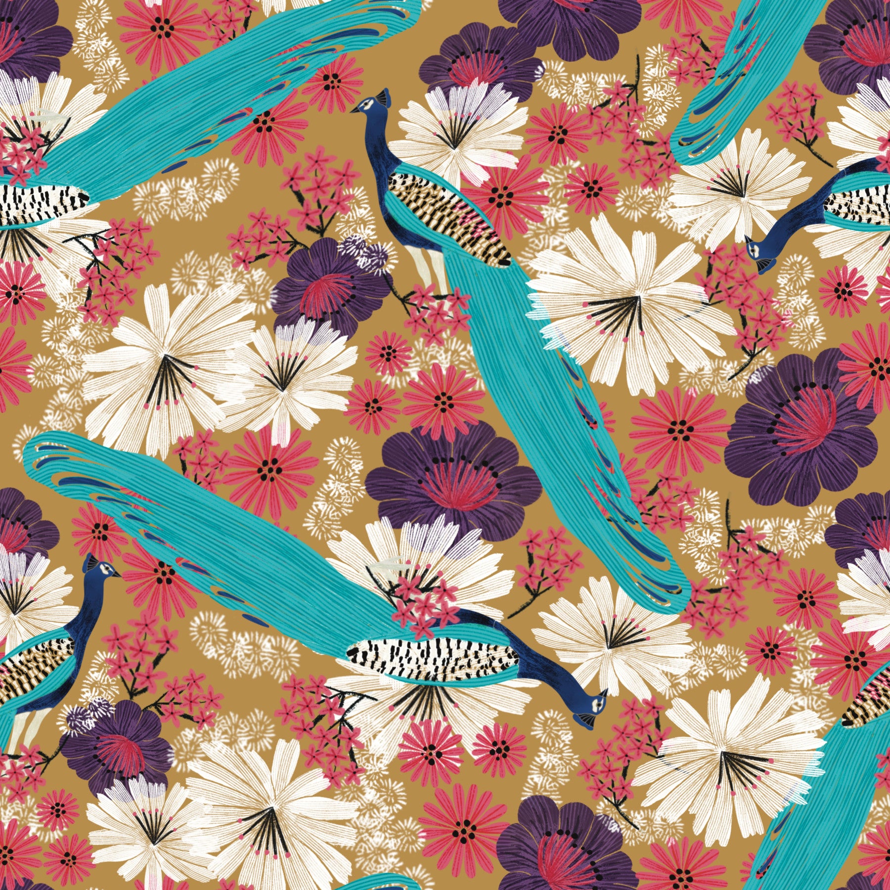 Peacock Promenade - Gold Wallpaper⁠