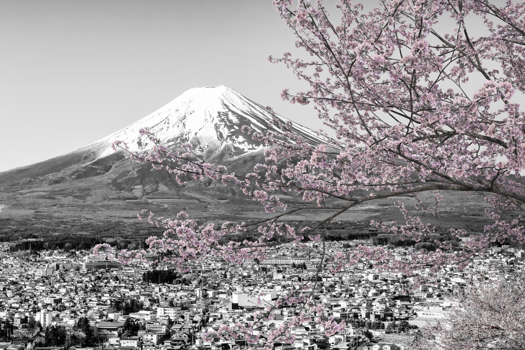 The Picturesque View of Mount Fuji Wall Mural captures a peaceful spring moment in Japan. With cherry blossoms in full bloom and Mount Fuji rising in the distance, this colorkey mural wallpaper highlights soft pinks against a calm black-and-white background. It’s an ideal wall mural for bedrooms, study rooms, or serene spaces. The mix of nature and heritage makes it a thoughtful choice of wallpaper for walls that deserve a gentle and elegant touch. Printed on quality material, it's easy to apply and adds visual interest without feeling too bold or busy. A simple way to enjoy timeless beauty.