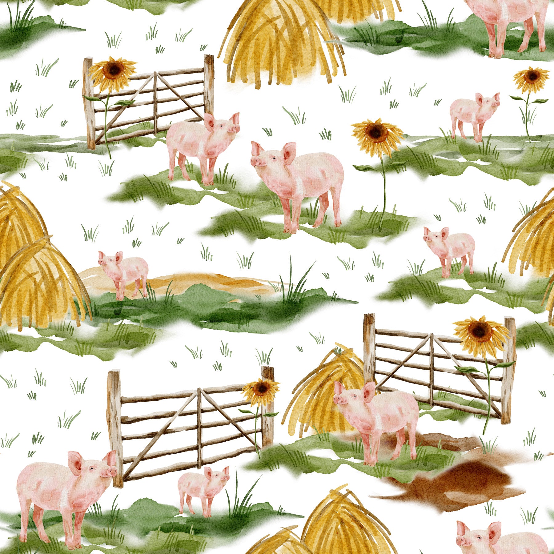 Sunny Piggy Farm Watercolor wall covering pattern unique artwork.