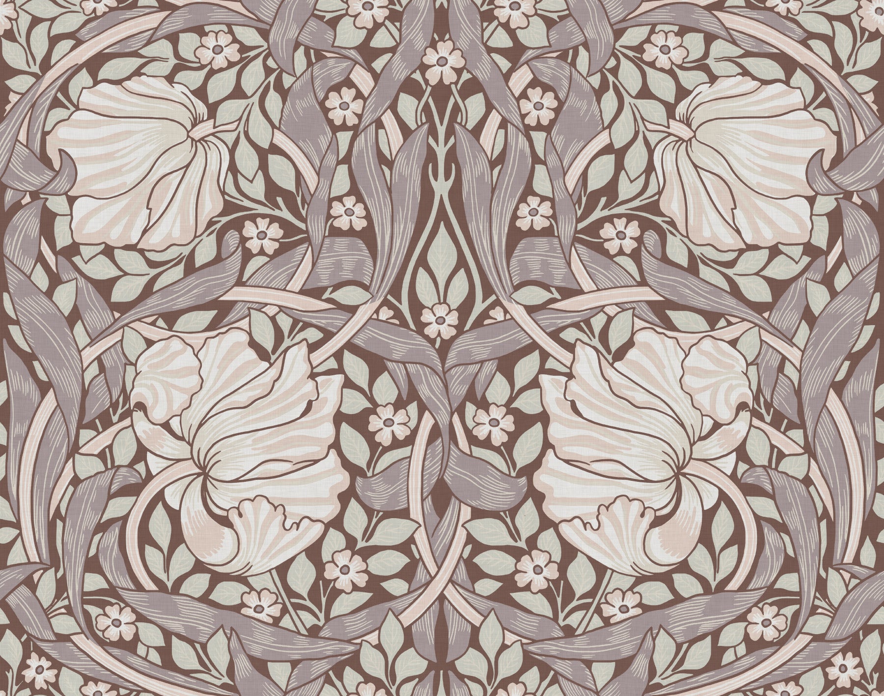 Immerse yourself in the timeless elegance of "Pimpernel by William Morris 16." This captivating wallpaper design showcases a richly detailed tapestry of stylized pimpernel flowers and flowing foliage, rendered in a sophisticated palette of muted browns, soft pinks, and gentle greens. The intricate Art Nouveau-inspired patterns intertwine seamlessly, creating a mesmerizing visual rhythm. The subtle texture evokes a feeling of luxurious fabric, adding depth and warmth to any space. Perfect for adding a touch of classic beauty with a modern twist, this wallpaper offers a sophisticated and calming atmosphere.
