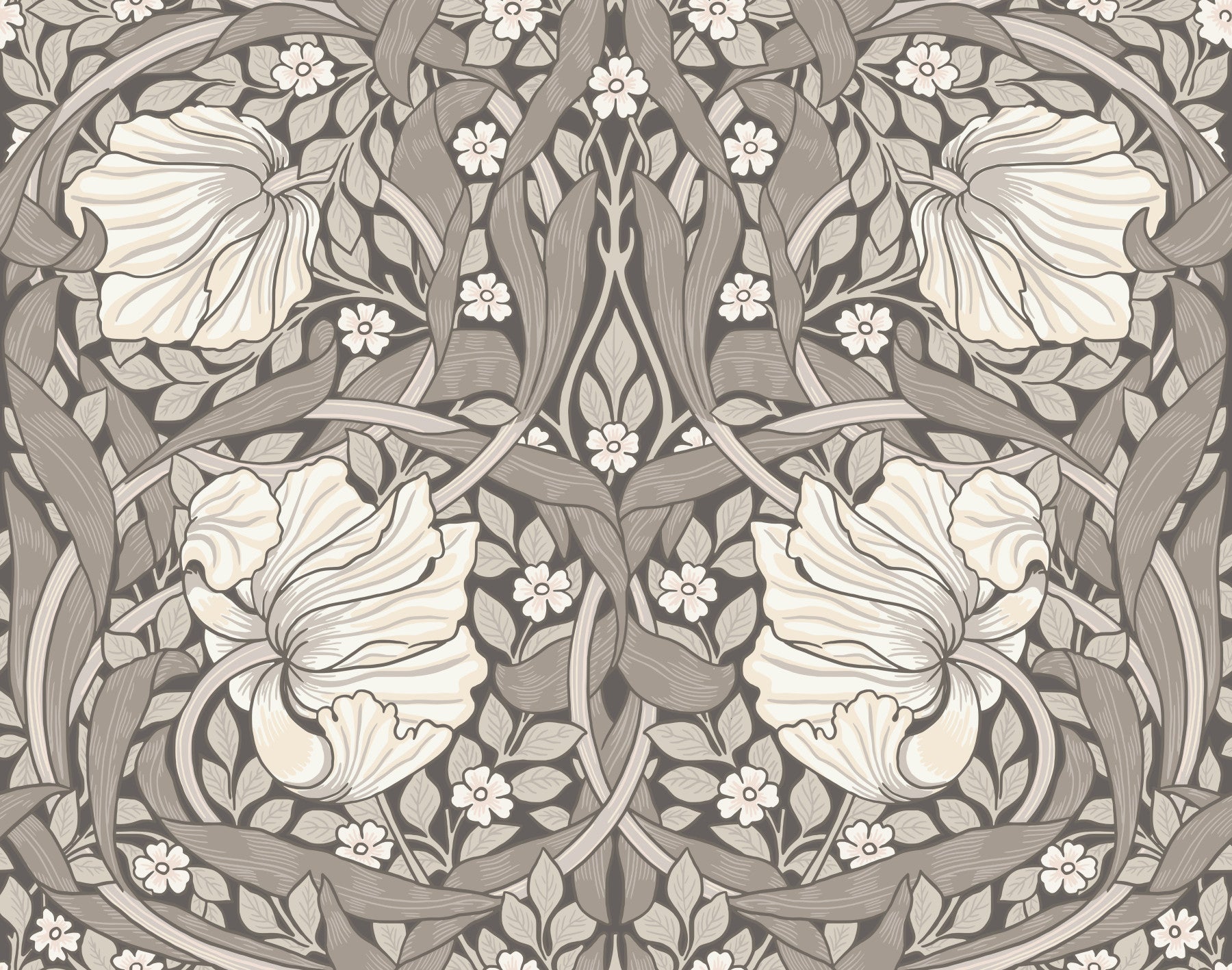 Indulge in the timeless elegance of "Pimpernel by William Morris 23," a captivating wallpaper design. This intricate pattern showcases a mesmerizing interplay of stylized tulips and delicate pimpernel flowers, rendered in a sophisticated palette of muted grays and creams. The flowing lines and organic forms, characteristic of William Morris's artistic style, create a sense of serene beauty and rich texture. The design's repeating motif offers a seamless and visually striking effect, ideal for adding a touch of classic artistry and sophistication to any space. Perfect for a tranquil bedroom or a refined study, this wallpaper exudes understated luxury and timeless charm.