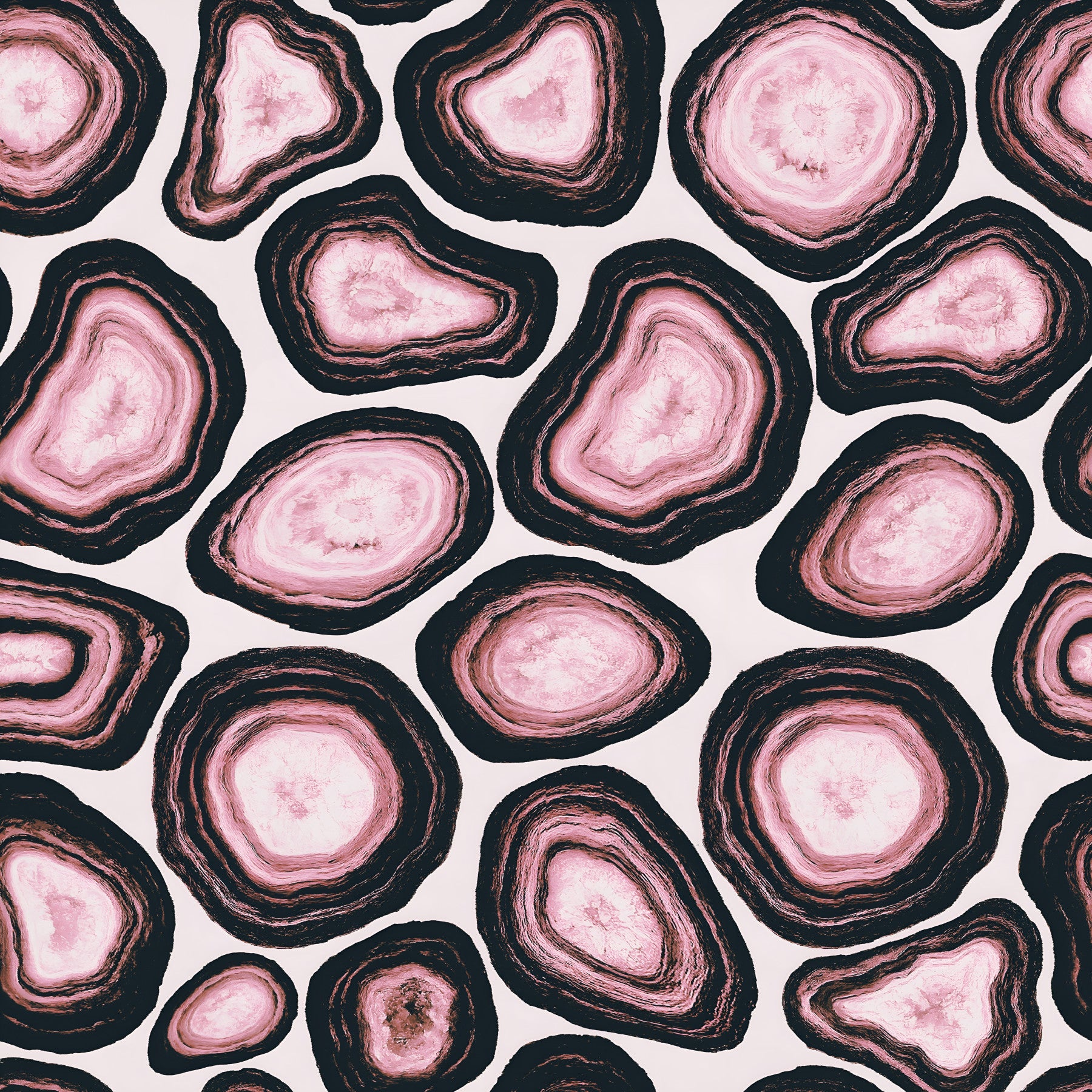 A seamless wallpaper with pink geode-style formations outlined in bold dark rings.