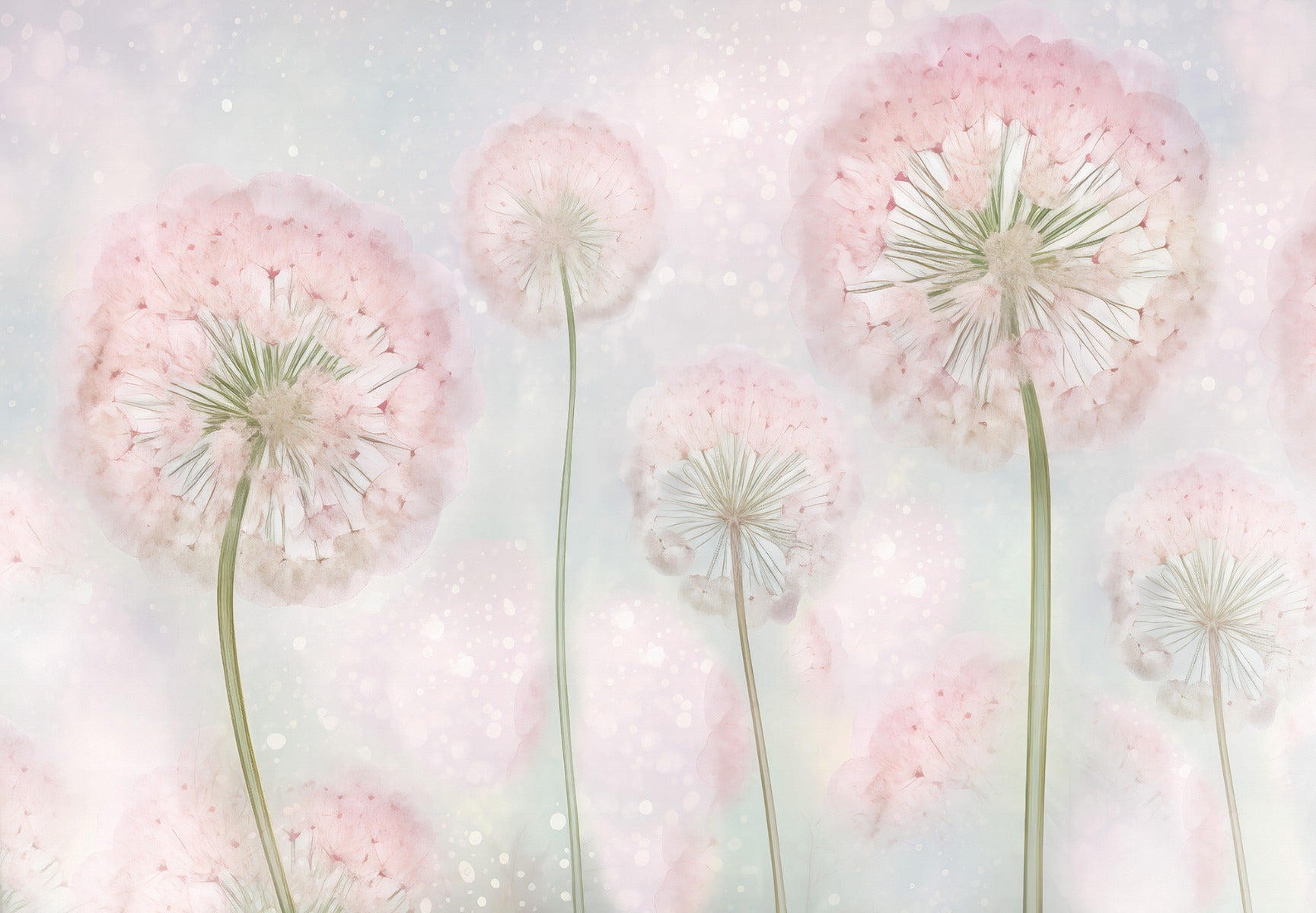 Brighten your space with pink color dandelion seeds wallpaper murals.