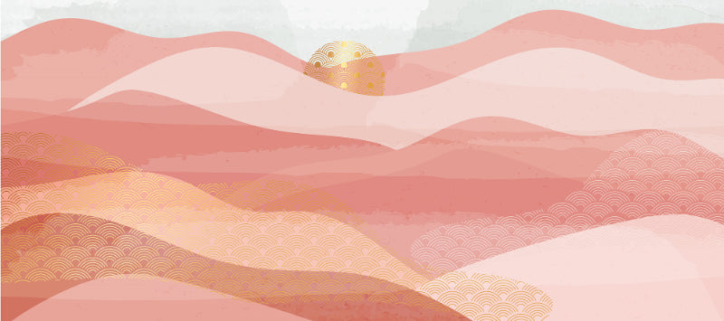 Pink wavy mural with golden accents