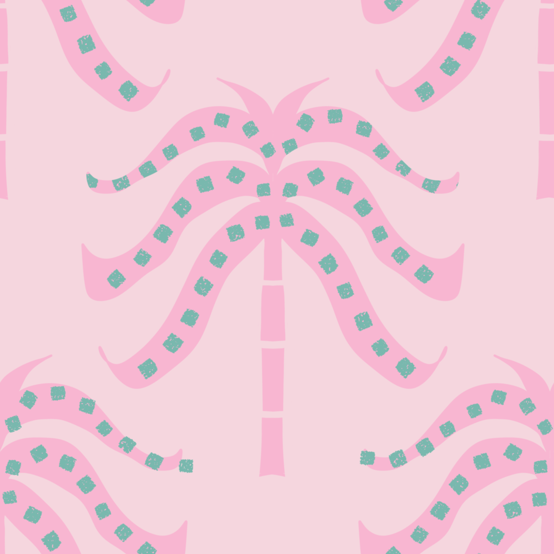 Create a serene oasis with this delightful palm tree print. Light pink meets turquoise creating a calming visual. This wallpaper for walls is a wonderful way to give a bathroom, nursery, or bedroom a cheerful yet restful ambiance. This unique design complements interiors by adding a splash of color without overwhelming your space. Soft, dreamy, and undeniably charming, this wallpaper offers style.