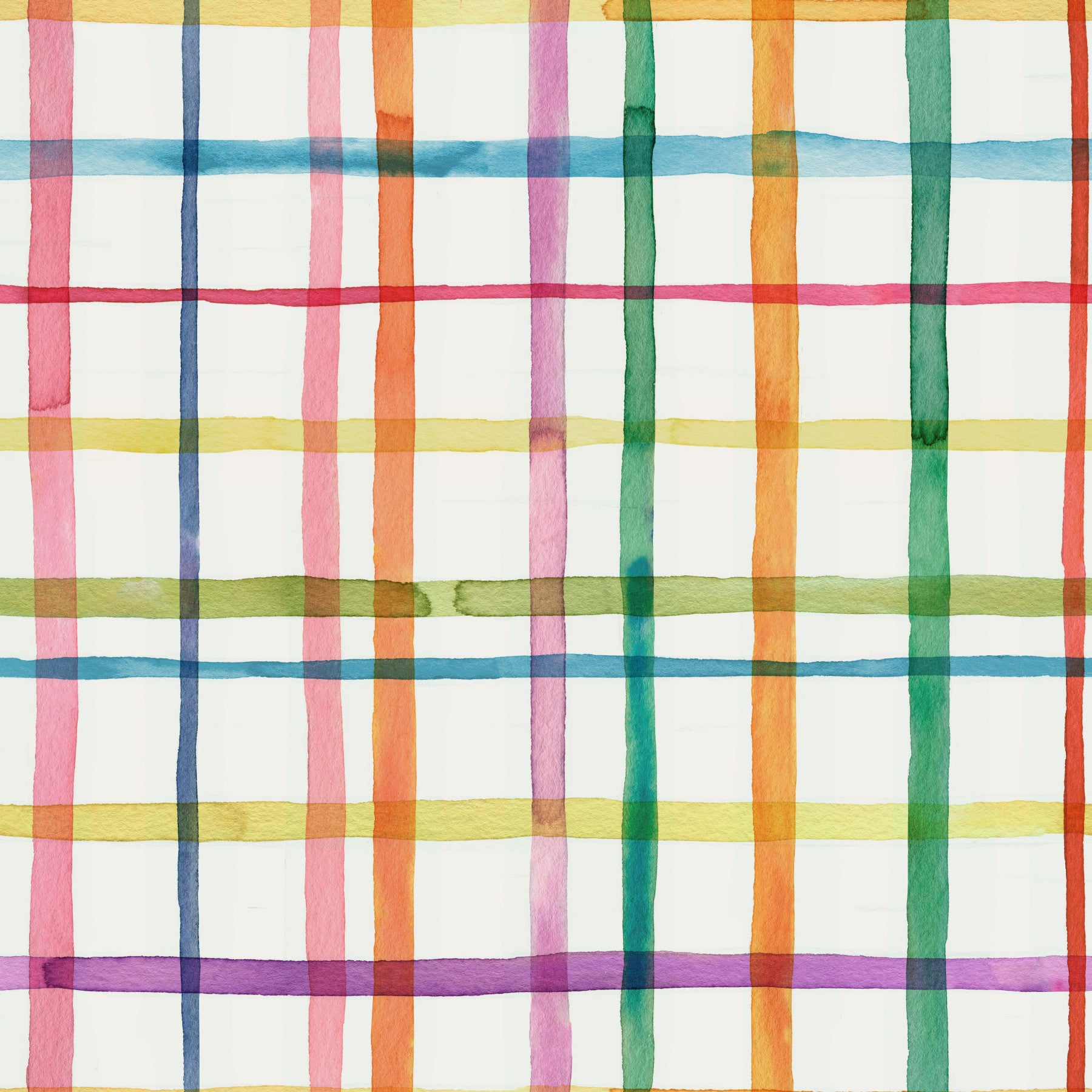 This vibrant wallpaper showcases a captivating interplay of watercolor plaids and geometric patterns. Hand-painted brushstrokes create a beautifully imperfect grid of intersecting lines in a spectrum of cheerful colors, including sunny yellows, fiery oranges, calming greens, and soft pinks and purples. The slightly faded, airy white background enhances the watercolor effect, lending a gentle, relaxed mood. This design offers a sophisticated yet playful aesthetic, perfect for adding a touch of artistic charm and visual interest to any digital device.