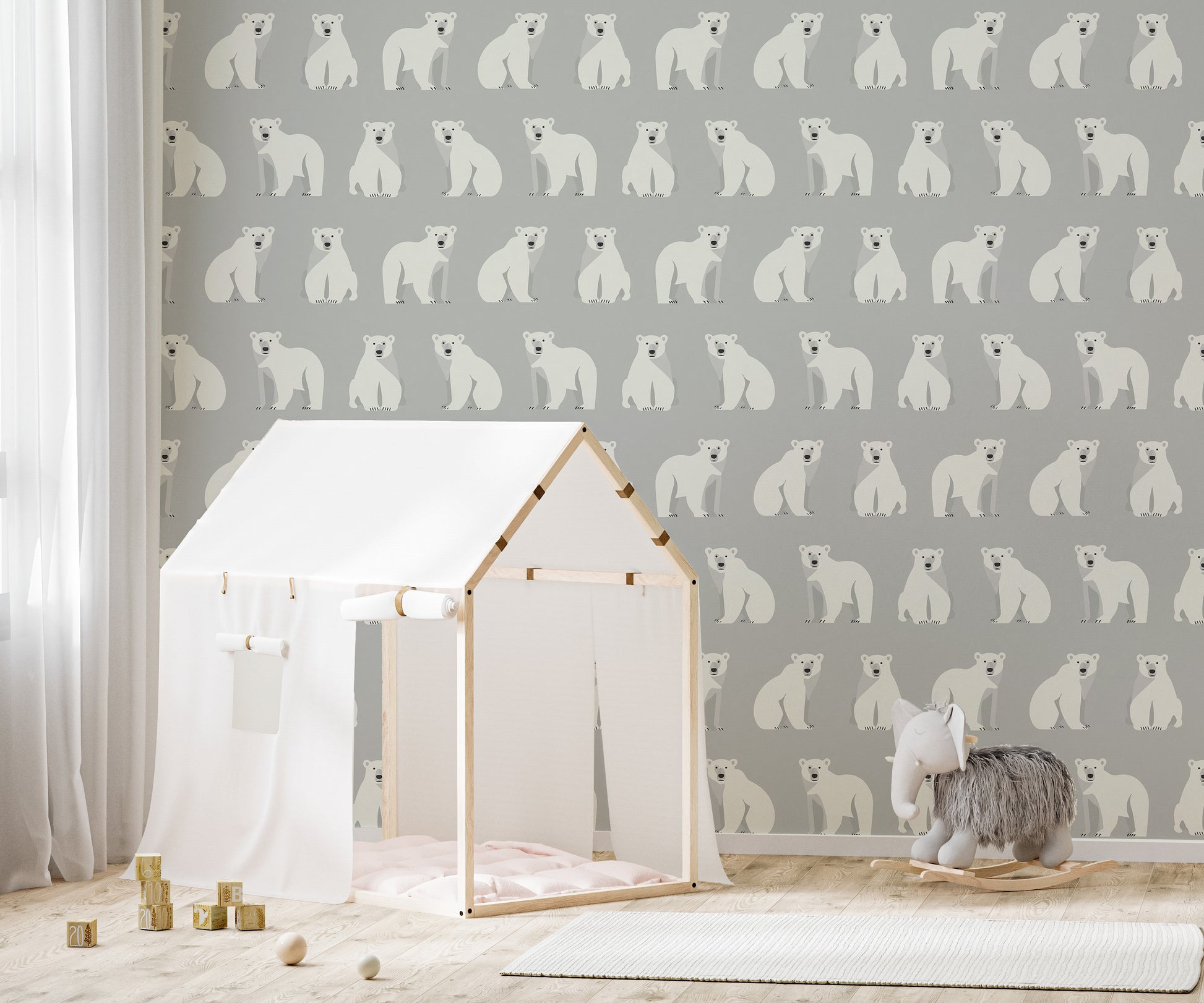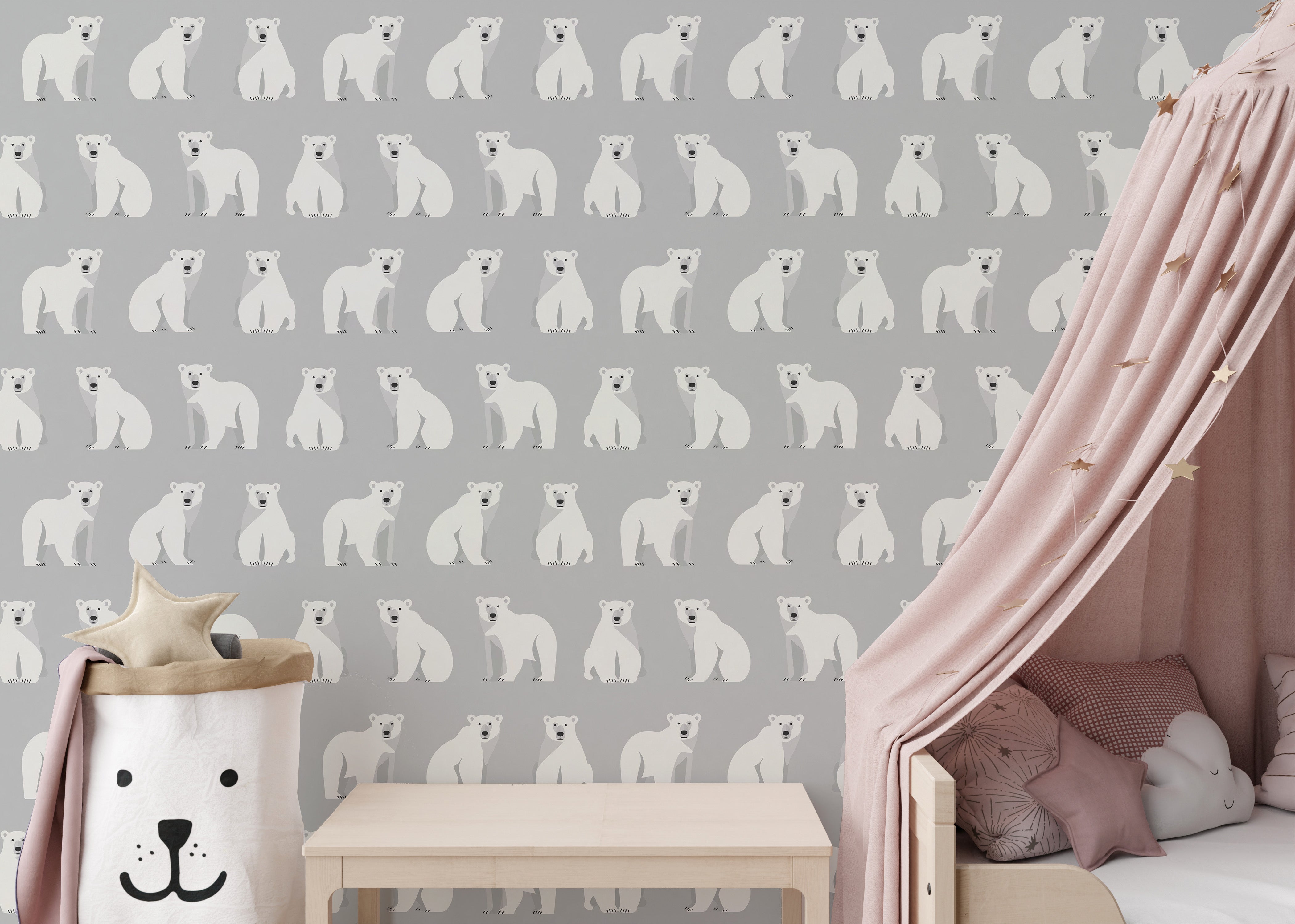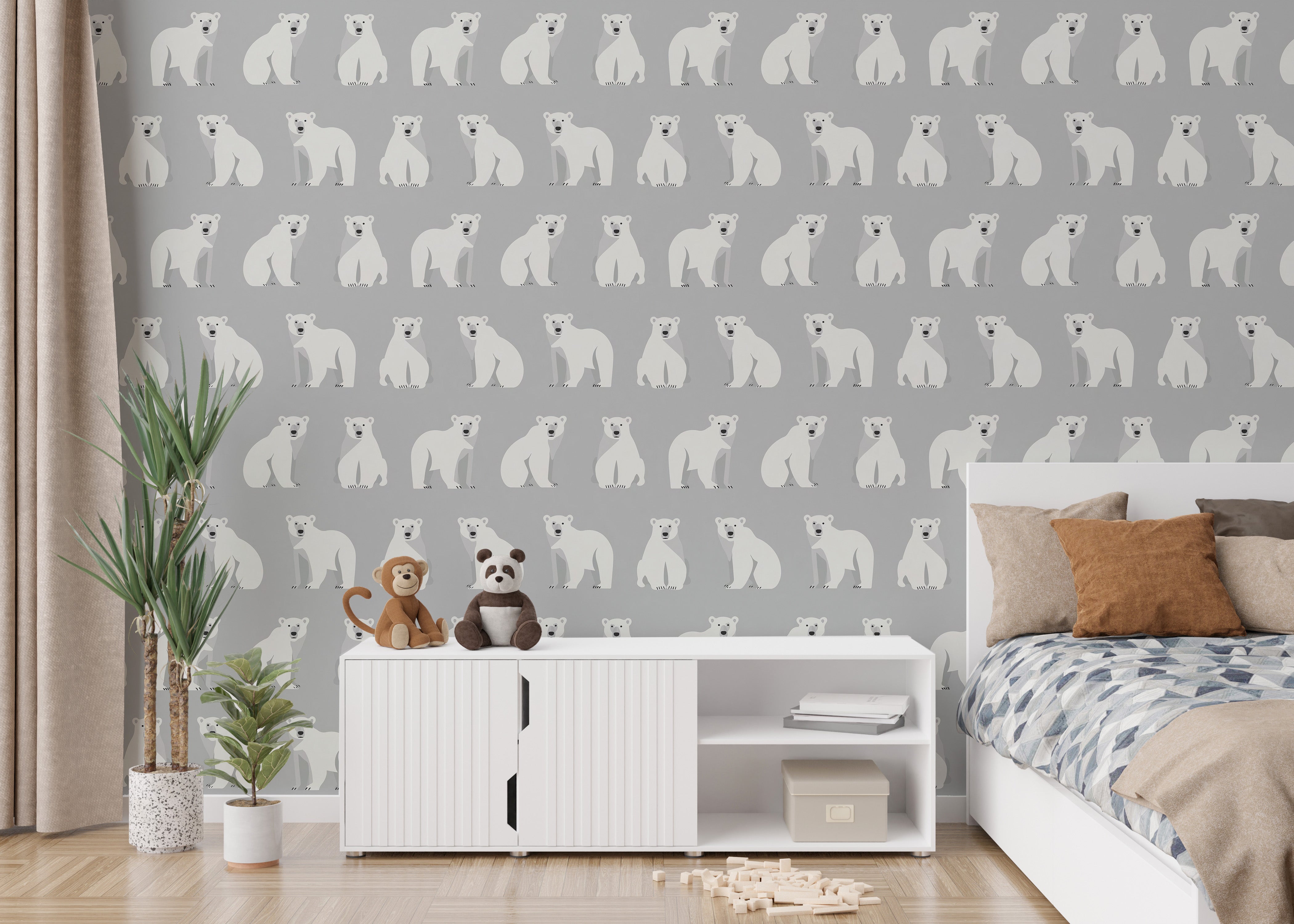 Polar Trio Arctic Bear Wallpaper brings the Arctic magic right into your home. Covered in cute polar bear illustrations, in different poses, this adorable design creates a cozy, playful vibe in nurseries, kids' rooms, or winter-themed spaces. The gentle, neutral backdrop enhances the minimalist yet whimsical appeal, making it a versatile pick for modern interiors. Inspired by the beauty of Nordic wildlife, this wallpaper creates a tranquil, welcoming space in itself. Whether it's for a child's room or a cozy reading corner, it transforms any space into an elegant, frigid wonderland.
