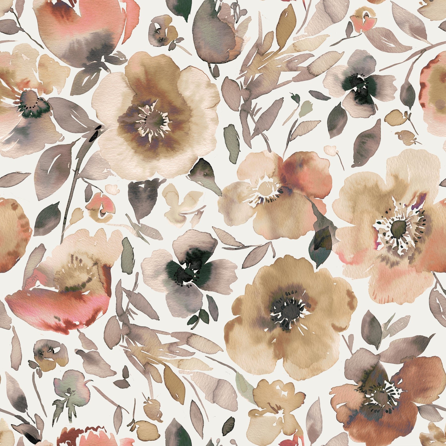 Embrace the ethereal beauty of this vintage-inspired wallpaper. Loose watercolor poppies in muted earth tones and soft blush pinks dance across a creamy white background, creating a dreamy, psychedelic effect. The rustic charm is enhanced by the slightly imperfect, hand-painted style, reminiscent of antique botanical illustrations. Delicate leaves and stems add depth and texture to this sophisticated design, perfect for adding a touch of bohemian elegance to any space. This wallpaper effortlessly blends modern aesthetics with a nostalgic feel, transforming your walls into a tranquil and artistic sanctuary.