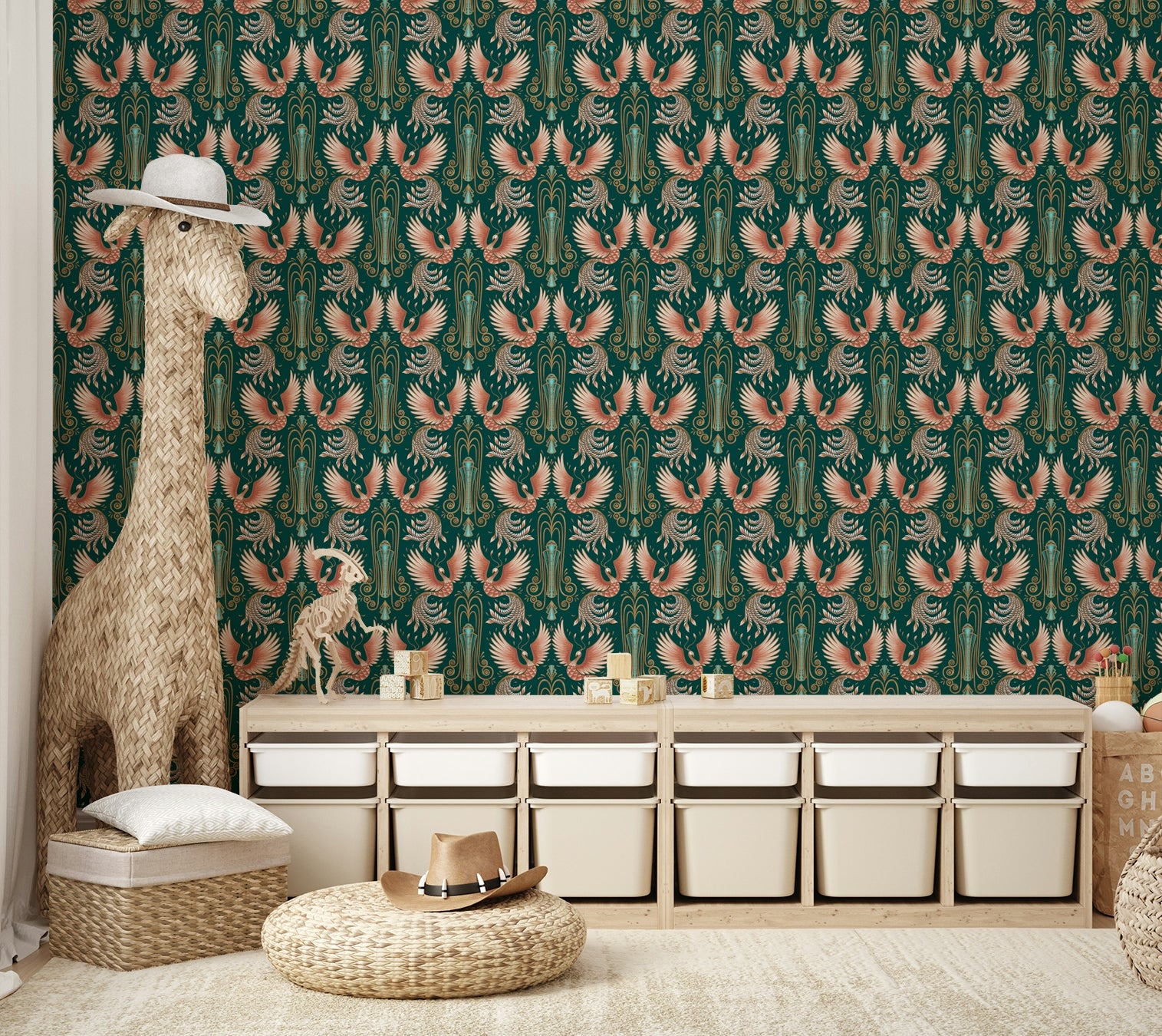 Embrace transformation and renewal with a stunning design featuring the rebirth of a phoenix. This captivating wallpaper brings vibrant colors and intricate patterns to your walls, creating a serene yet striking environment. Perfect for adding a touch of mythology and inspiration to your home, it's ideal for creating a focal point in any room. Let your space resonate with the powerful symbolism of rebirth and beauty, making every moment at home feel truly special.