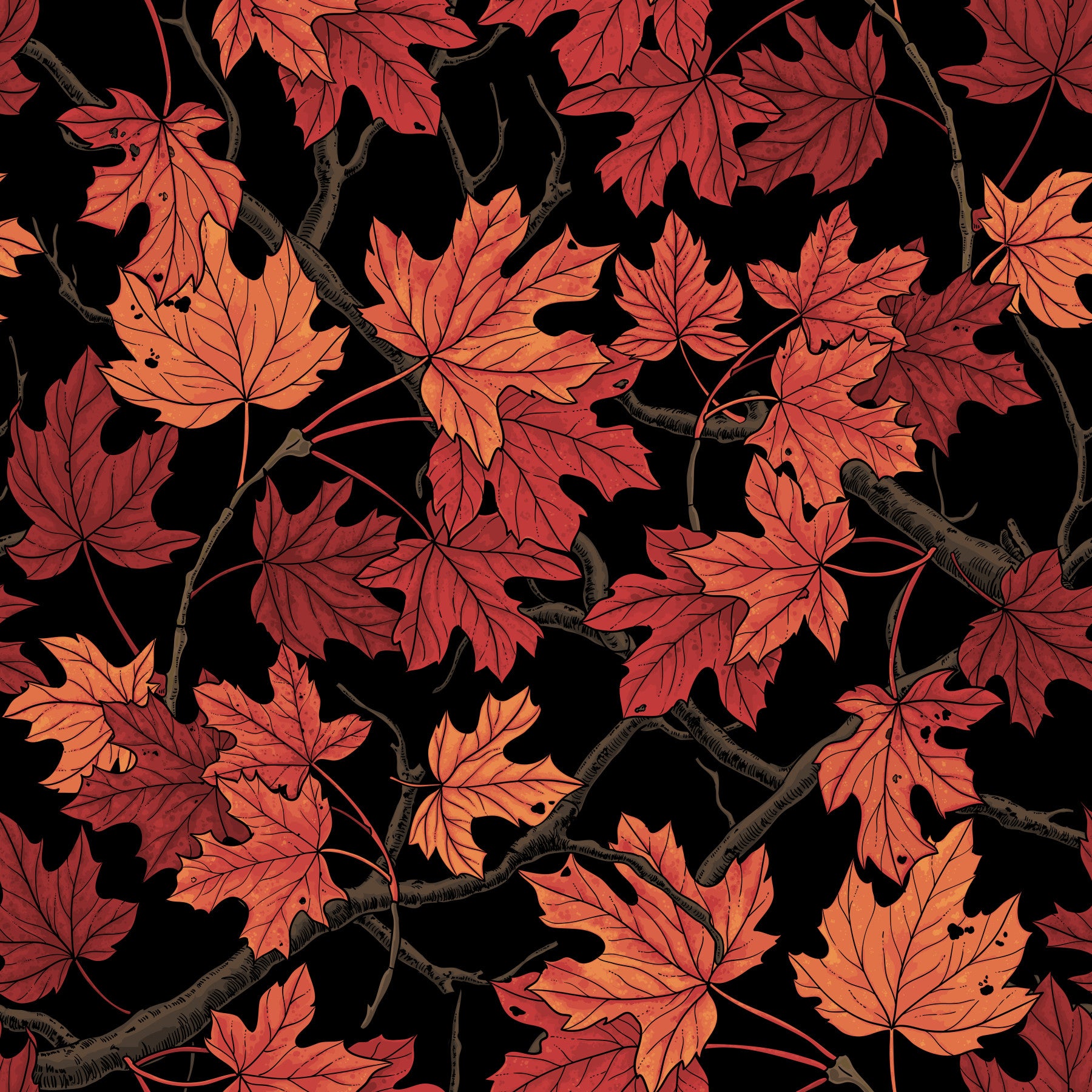 Autumn Foliage on Black Wallpaper – Bold, dramatic design with rich red maple leaves contrasting against black.
