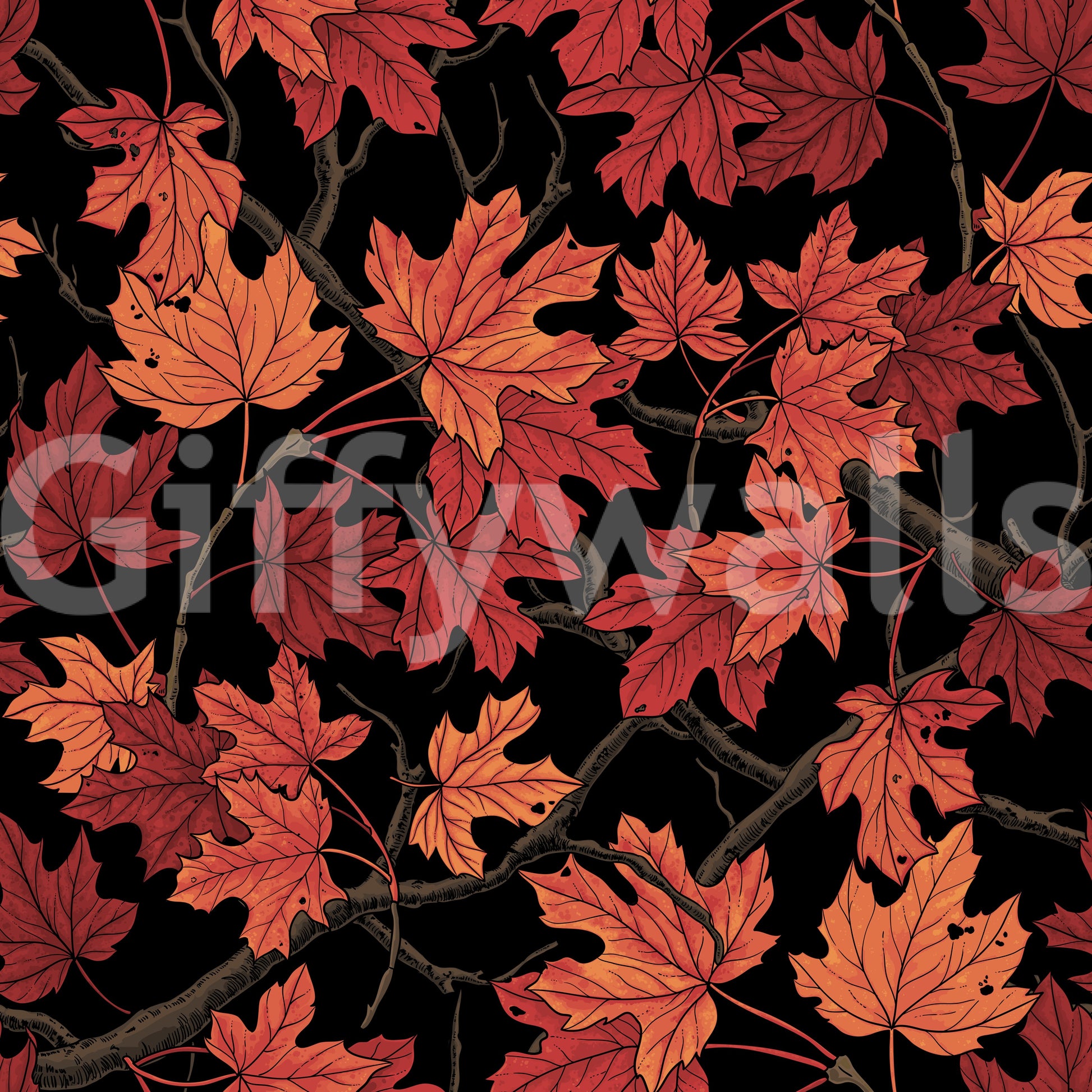 Autumn Maple Leaf Wall Mural – Bold design showcasing rich red leaves on stark black for dramatic contrast.