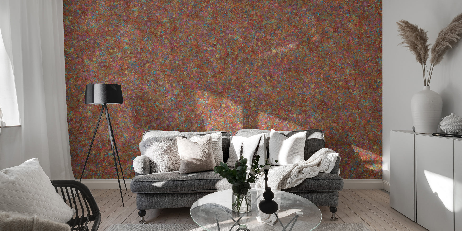 Elegant red floral wallpaper with murals
