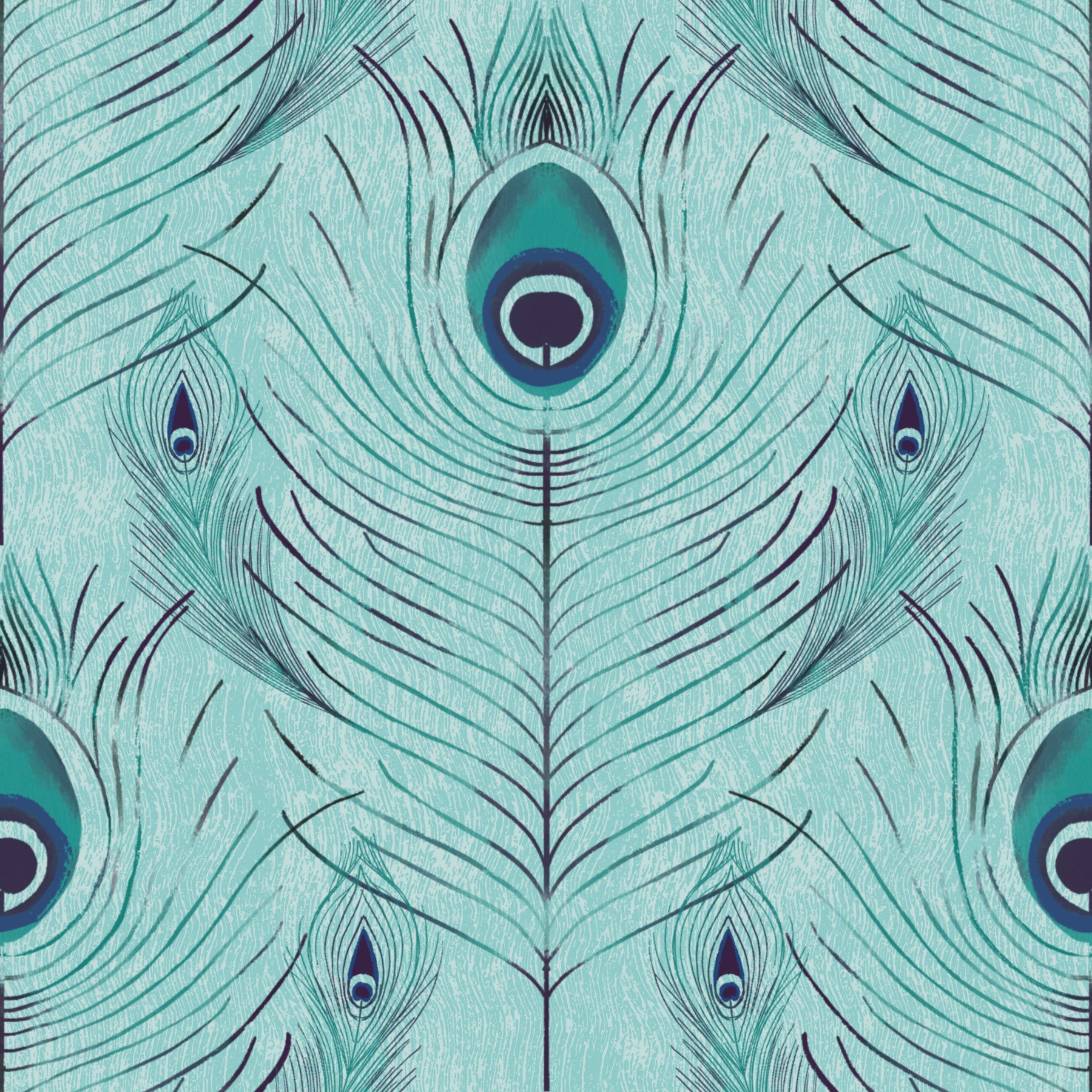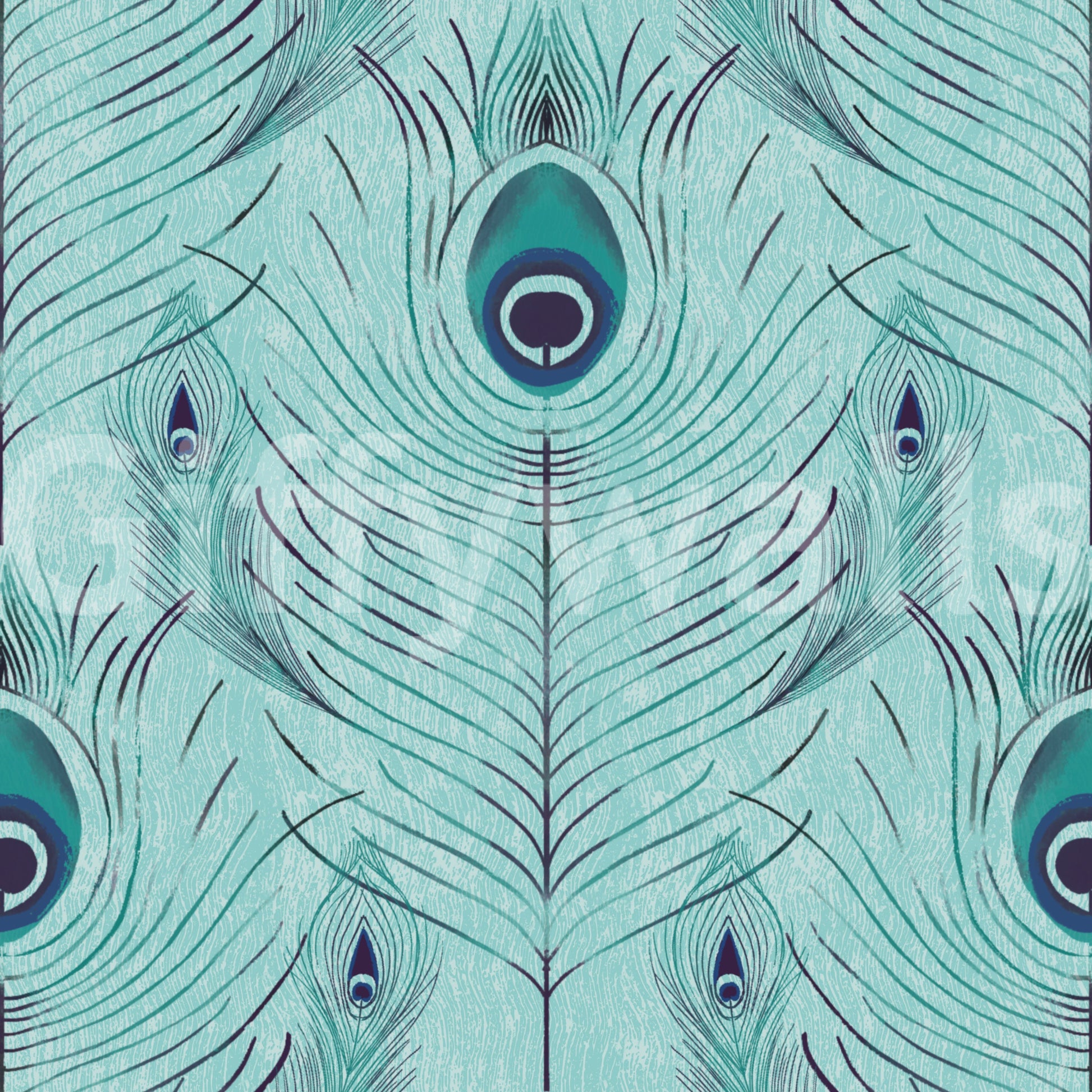 Transform your space with this stunning peacock feather-inspired design. The repeat pattern showcases detailed plumes in teal and navy, set against a blue backdrop. This wallpaper offers a touch of refined elegance to any room, turning ordinary walls into captivating features. Install this wallpaper for walls in living rooms, bedrooms, or dining areas for a truly sophisticated space. The cool tones and intricate details complement both modern and traditional styles.