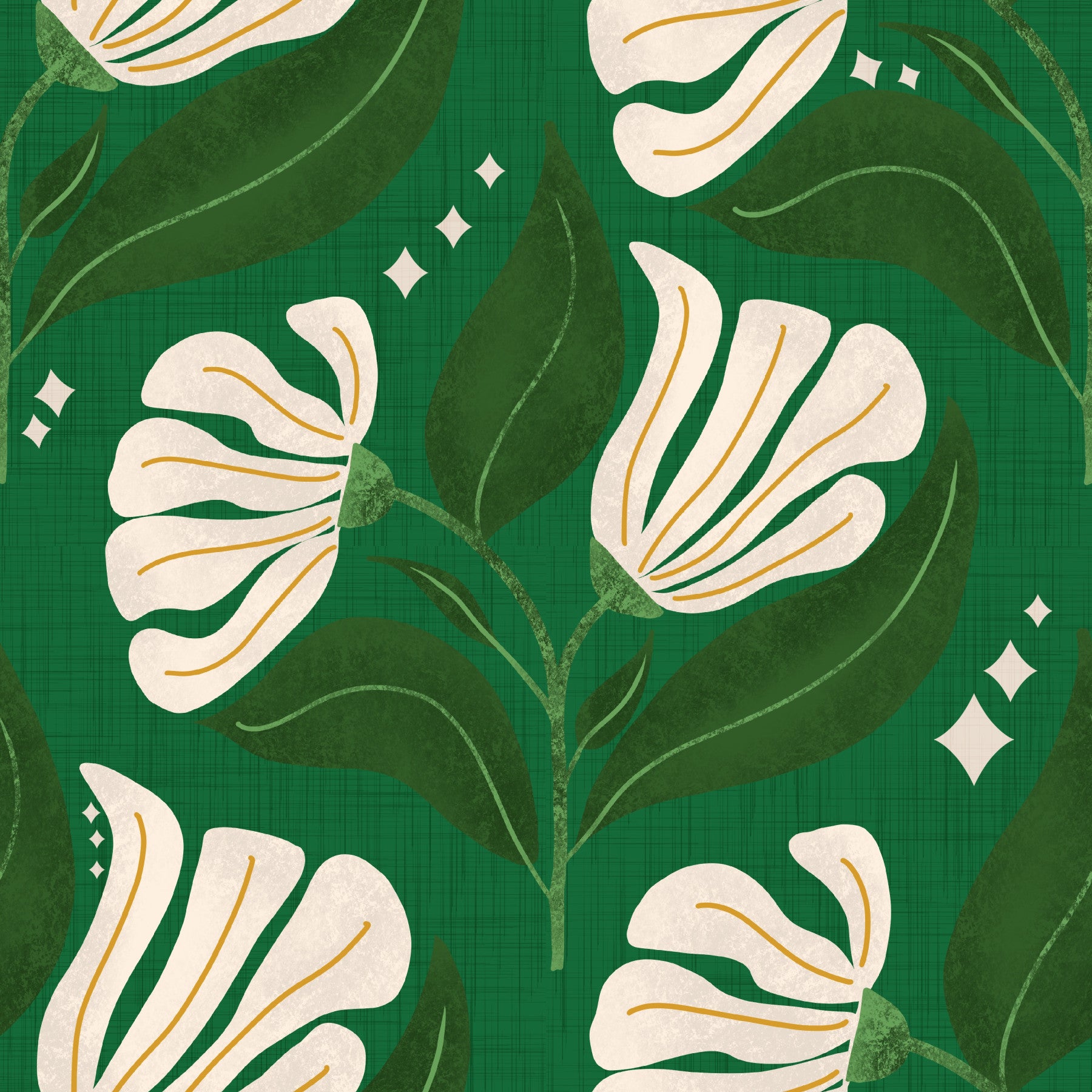 Step back into the groovy vibes of the 70s with this 'Retro 70s Cream Florals on Avocado Green' wallpaper. Immerse yourself in a captivating design featuring bold, vintage-inspired flowers in a delicate cream hue, set against a rich and inviting avocado green backdrop. This wallpaper embodies the essence of retro chic, bringing a touch of nostalgia and warmth to any space.