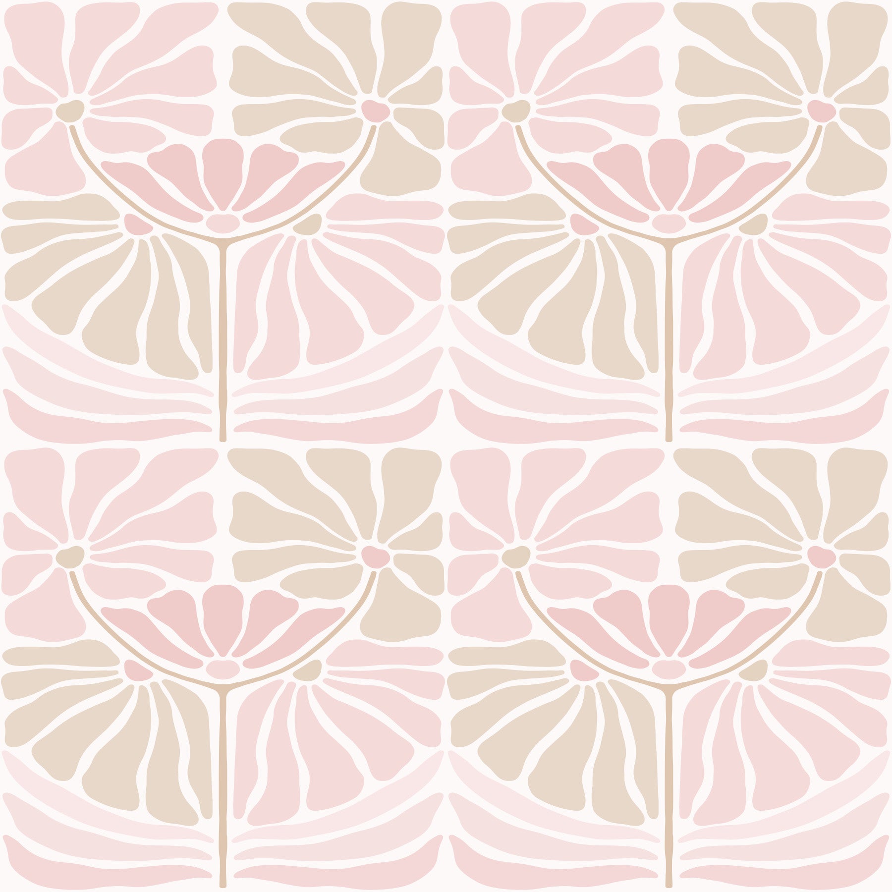 This wallpaper design features a repeating pattern of stylized flowers in soft blush pink and beige tones. The organic shapes and gentle color palette create a calming and serene atmosphere, perfect for bedrooms, living rooms, or any space seeking a touch of understated elegance. The seamless pattern ensures a cohesive look across your walls, while the muted tones allow the design to blend seamlessly with various decor styles. This wallpaper is a beautiful choice for those who appreciate soft aesthetics and subtle details, offering a peaceful and sophisticated ambiance to any room. The simplicity of the design allows it to be versatile and timeless, ensuring its appeal will endure.