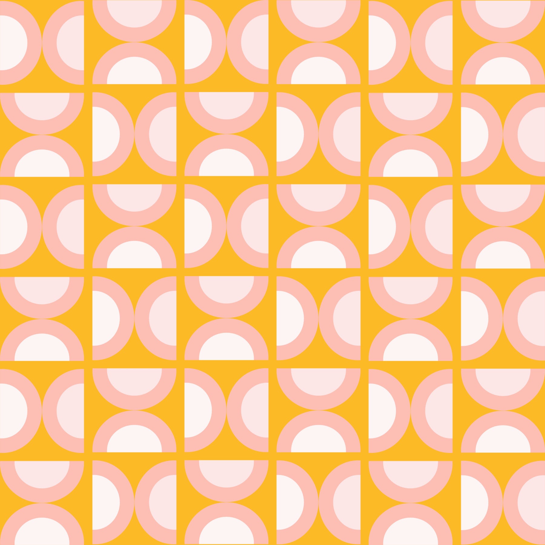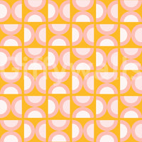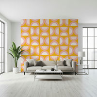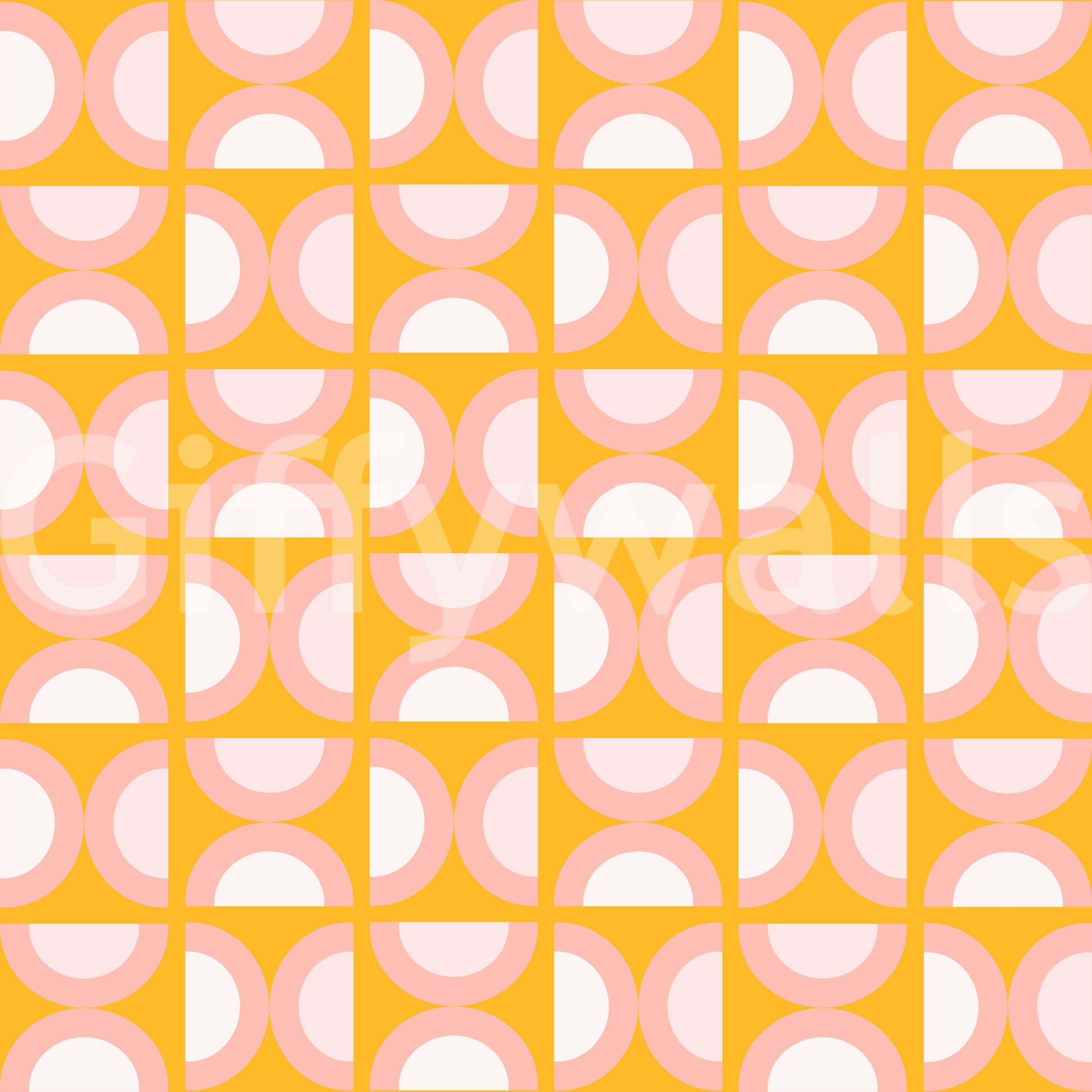 Bring a playful vibe with this retro-inspired wallpaper. Semicircles in blush pink and cream dance across a golden-yellow background, creating a lively geometric pattern. This design adds a touch of charm to nurseries, playrooms, or even kitchens. The wallpaper for walls offers a delightful backdrop, instantly brightening any space. This cheerful repeat pattern makes a fantastic statement wall, blending seamlessly with both modern and vintage decor. It enlivens your living room or enhances the joy in a child’s bedroom.