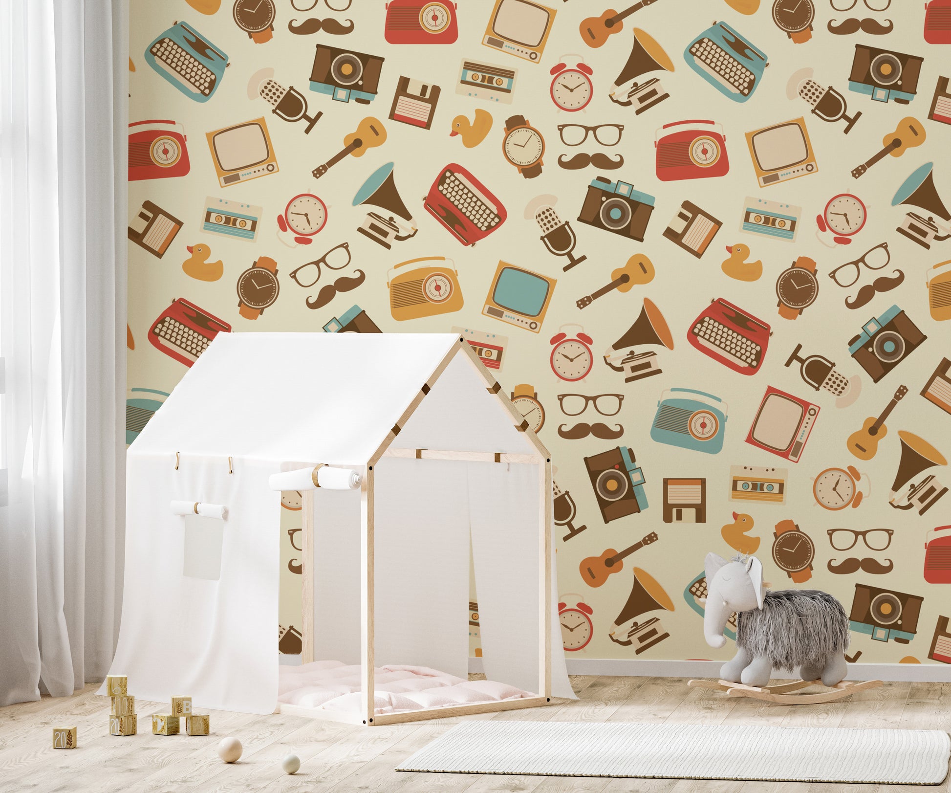 Playful retro wallpaper with nostalgic elements