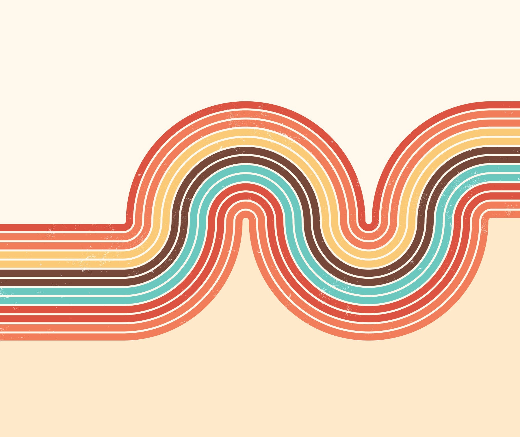 Embrace the groovy vibes of the 70s with 'Retro Curvy Lines 3'. This wallpaper features a captivating design of undulating, multicolored stripes in warm, earthy tones. The retro aesthetic is amplified by a subtle distressed texture, adding a vintage feel to the smooth, flowing curves. The interplay of color and shape creates a visually pleasing and nostalgic effect, perfect for adding a touch of 70s flair to your space. Its minimalist yet eye-catching design makes it ideal for both desktop and mobile backgrounds.