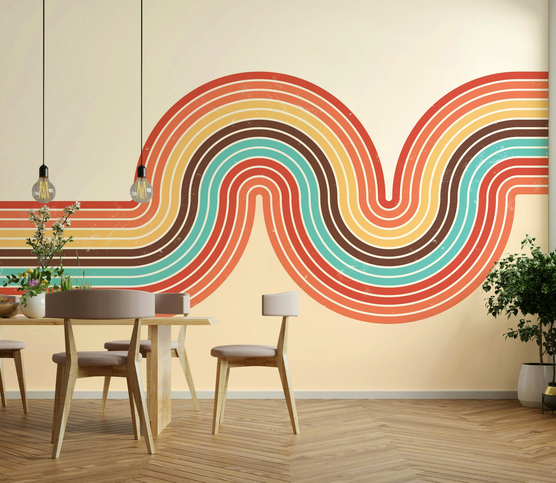 Retro Curvy Lines 3 Wall Mural