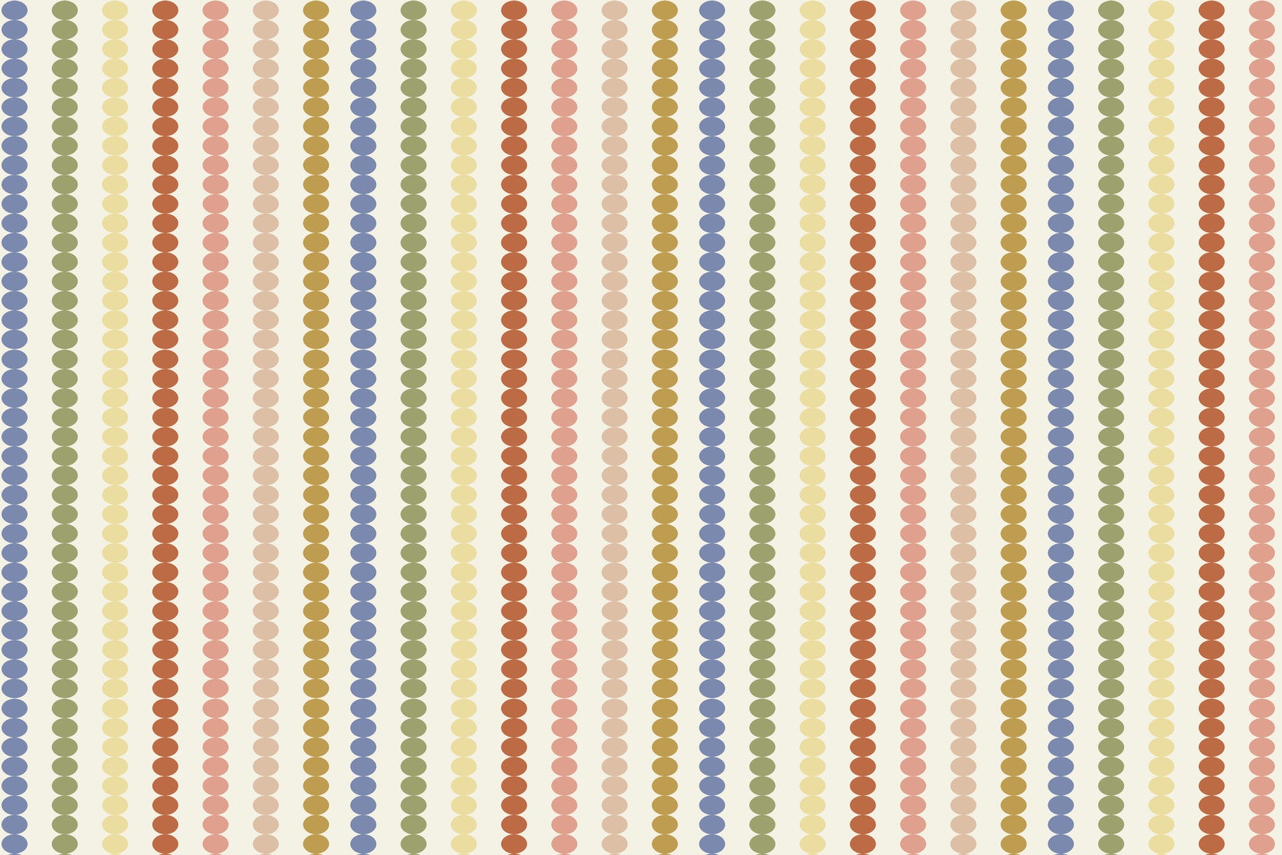 Bring a playful, retro vibe to your home with this dot-dash pattern. The design features vertical rows of solid color circles that create a cheerful, yet structured visual rhythm. Its muted tones—blues, greens, yellows, and oranges—make it blend with various interior styles, from mid-century modern to boho chic. Install this wallpaper for walls in a living room, bedroom, or hallway to instantly brighten the space. This design introduces character and visual interest, without overwhelming other decor elements.