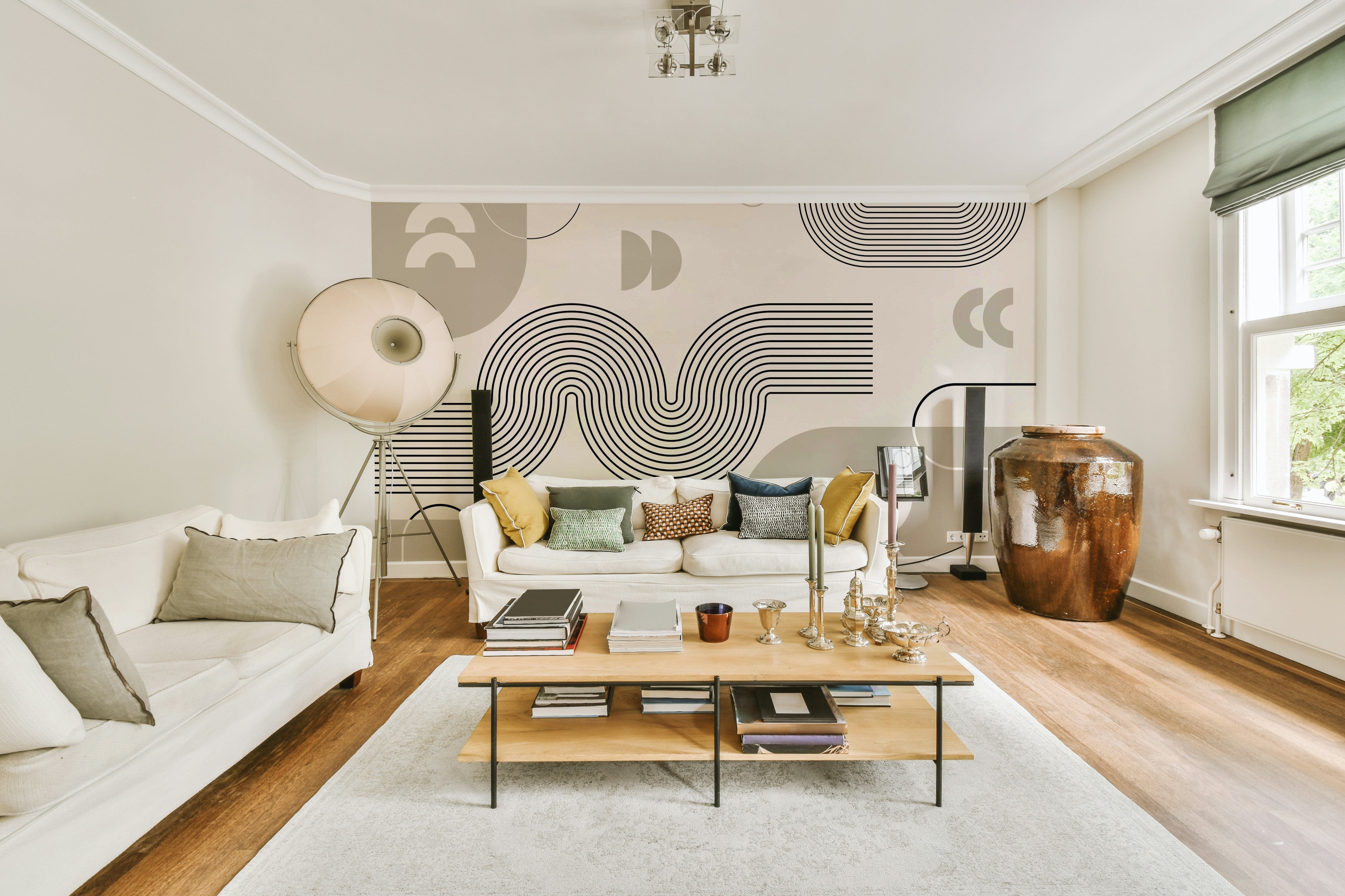 Flowing Retro Geometric Wall Mural Design