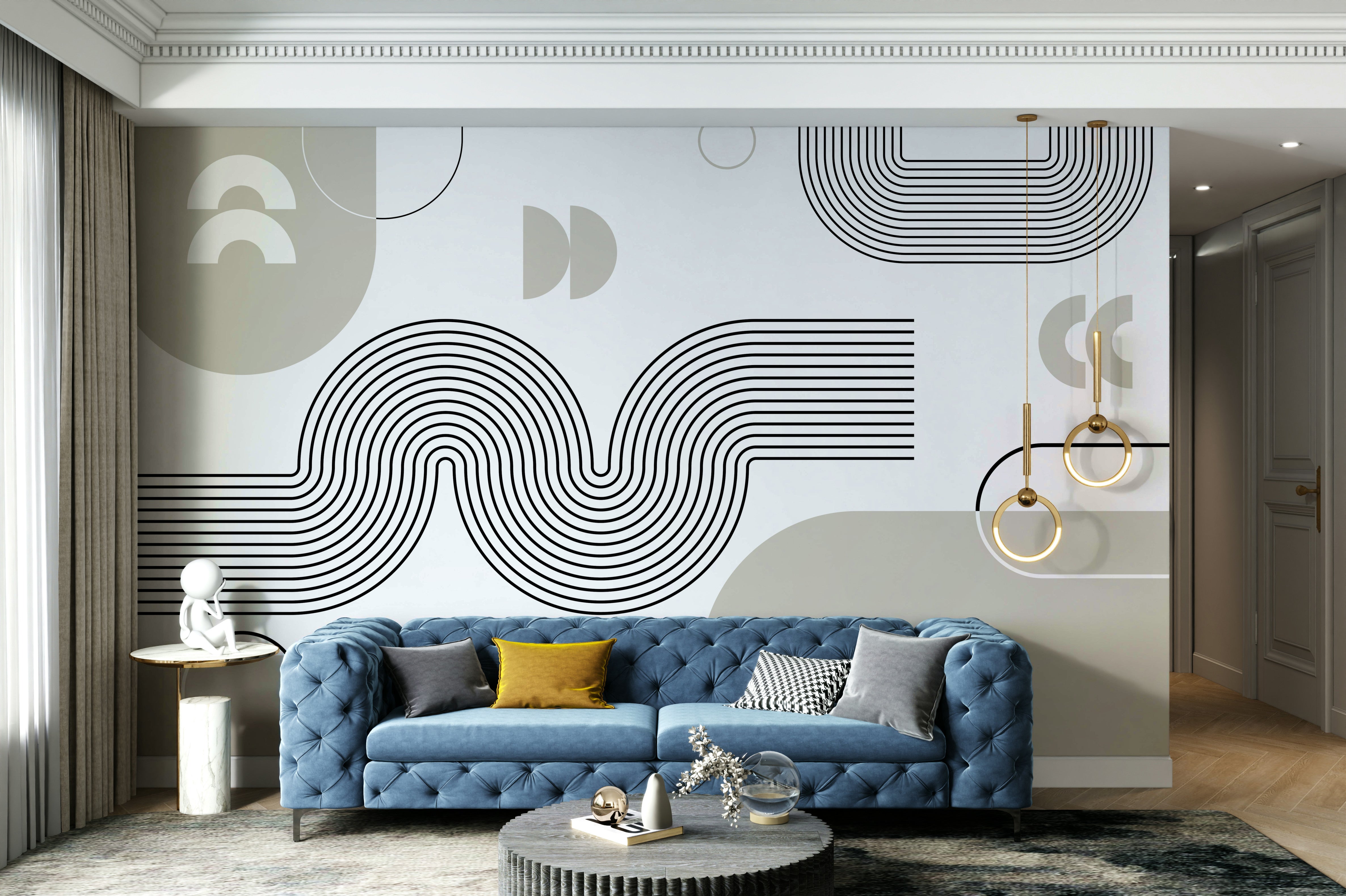 Retro Geometric Waves Wall Mural Design