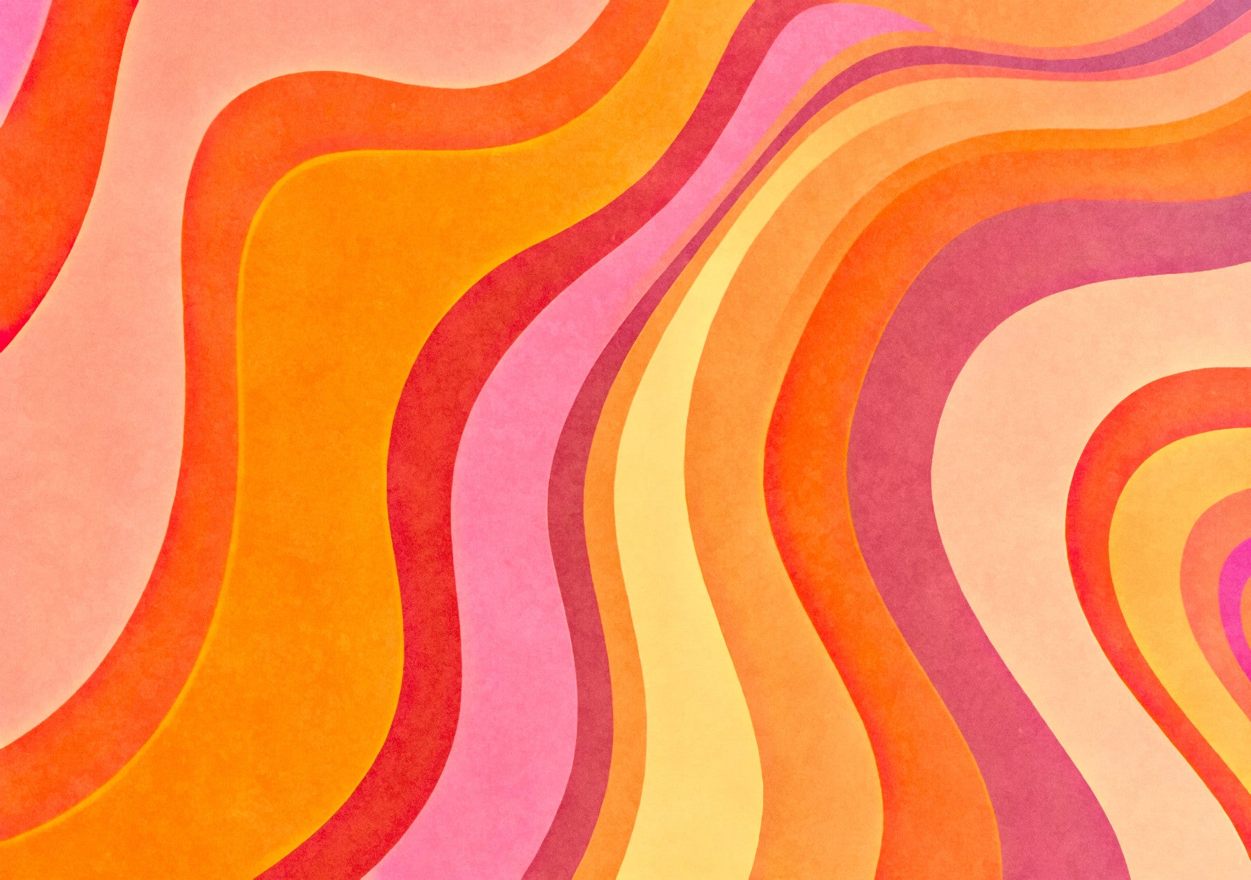 Retro Groovy Wavy Watercolor Summer Colors Wall Mural
