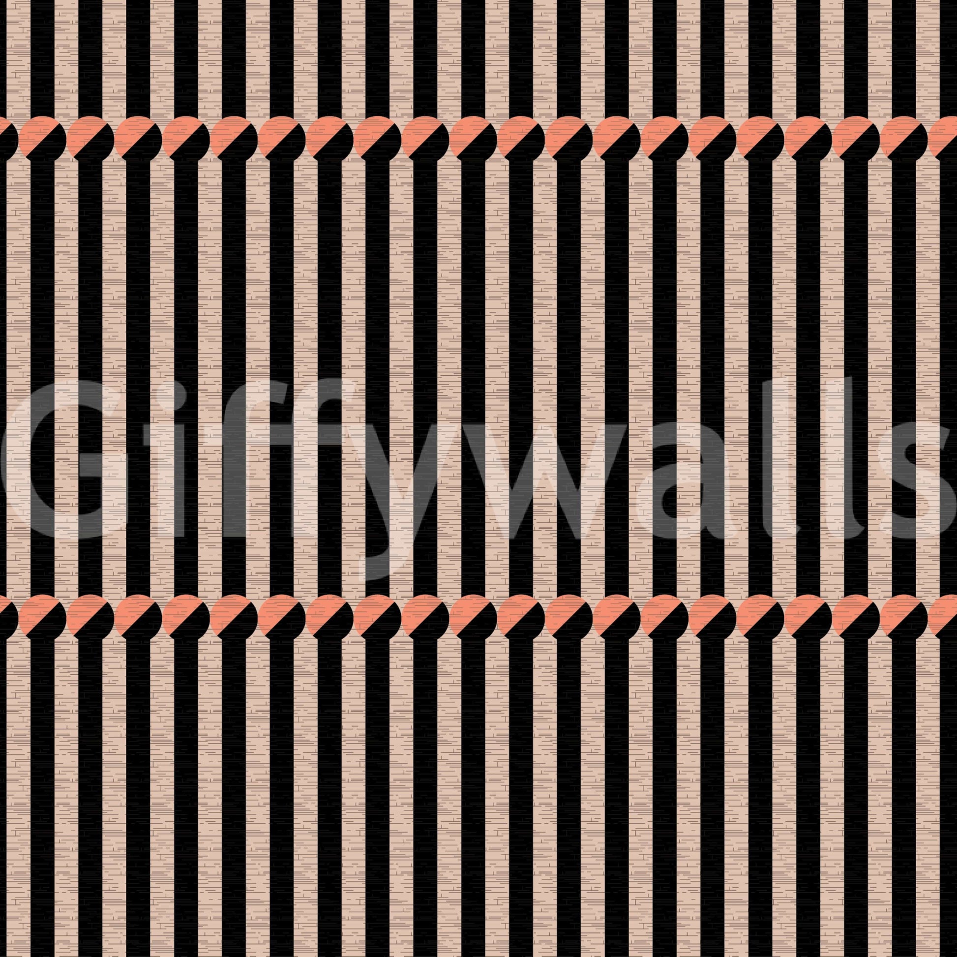 Retro Lines is a striking vertical stripe design that combines timeless order with a touch of playful rhythm. The alternating black and blush stripes are accented with small diagonal segments that break the uniformity in a fresh, dynamic way. Elegant and modern, this design suits home interiors seeking a touch of structured sophistication.