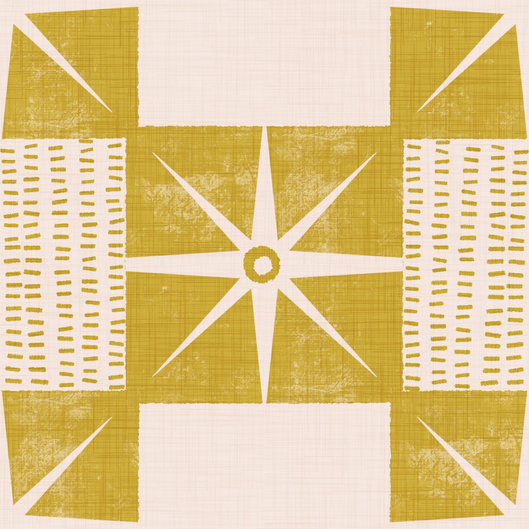 Retro Starburst Quilt Block - Minimalist Mid Century Mustard Yellow Wallpaper⁠