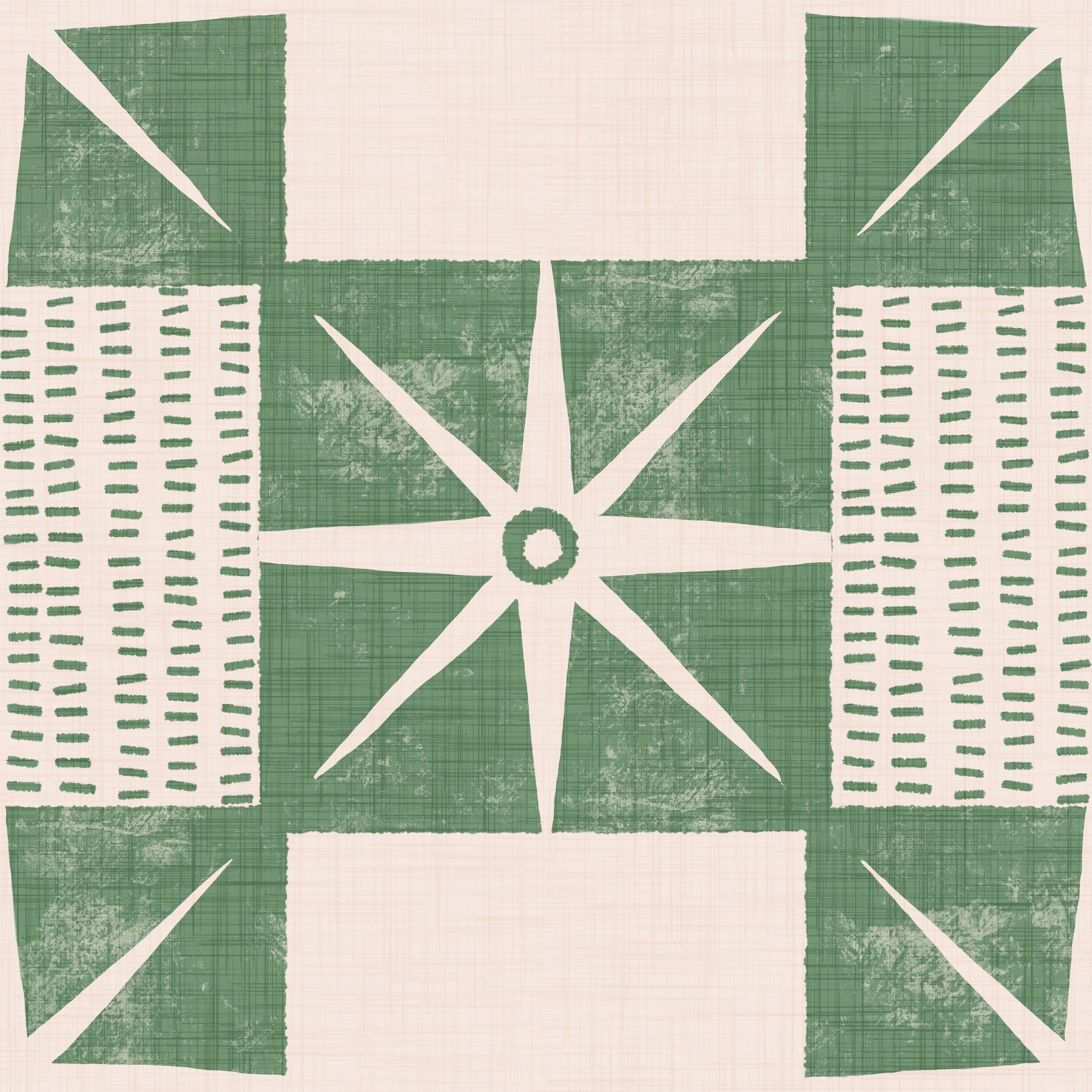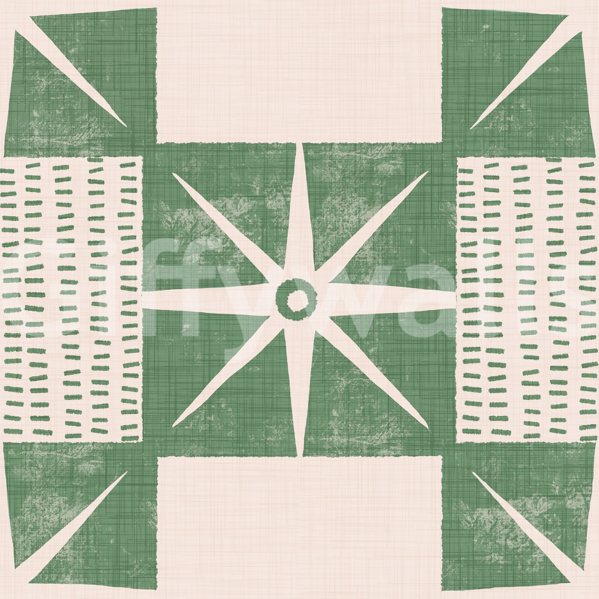 Retro Starburst Quilt Block - Minimalist Mid Century Sage Wallpaper⁠