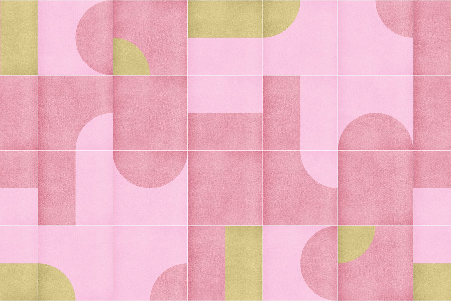 Step back in time with 'Retro Tiles 14,' a visually captivating wallpaper that channels the spirit of mid-century modern design. This striking design features a playful arrangement of geometric shapes in a palette of delicate pinks and soft gold, arranged in a tile-like grid. The minimalist composition evokes a sense of nostalgia, while the smooth, textured finish adds a touch of sophistication and depth. Arcs and rectangles dance across the screen, creating a harmonious blend of retro charm and contemporary appeal. Ideal for adding a pop of personality to any device, 'Retro Tiles 14' brings a fresh, vintage-inspired aesthetic to your digital world. Embrace the past with this unique and timeless design – perfect for those who appreciate classic style with a modern twist.