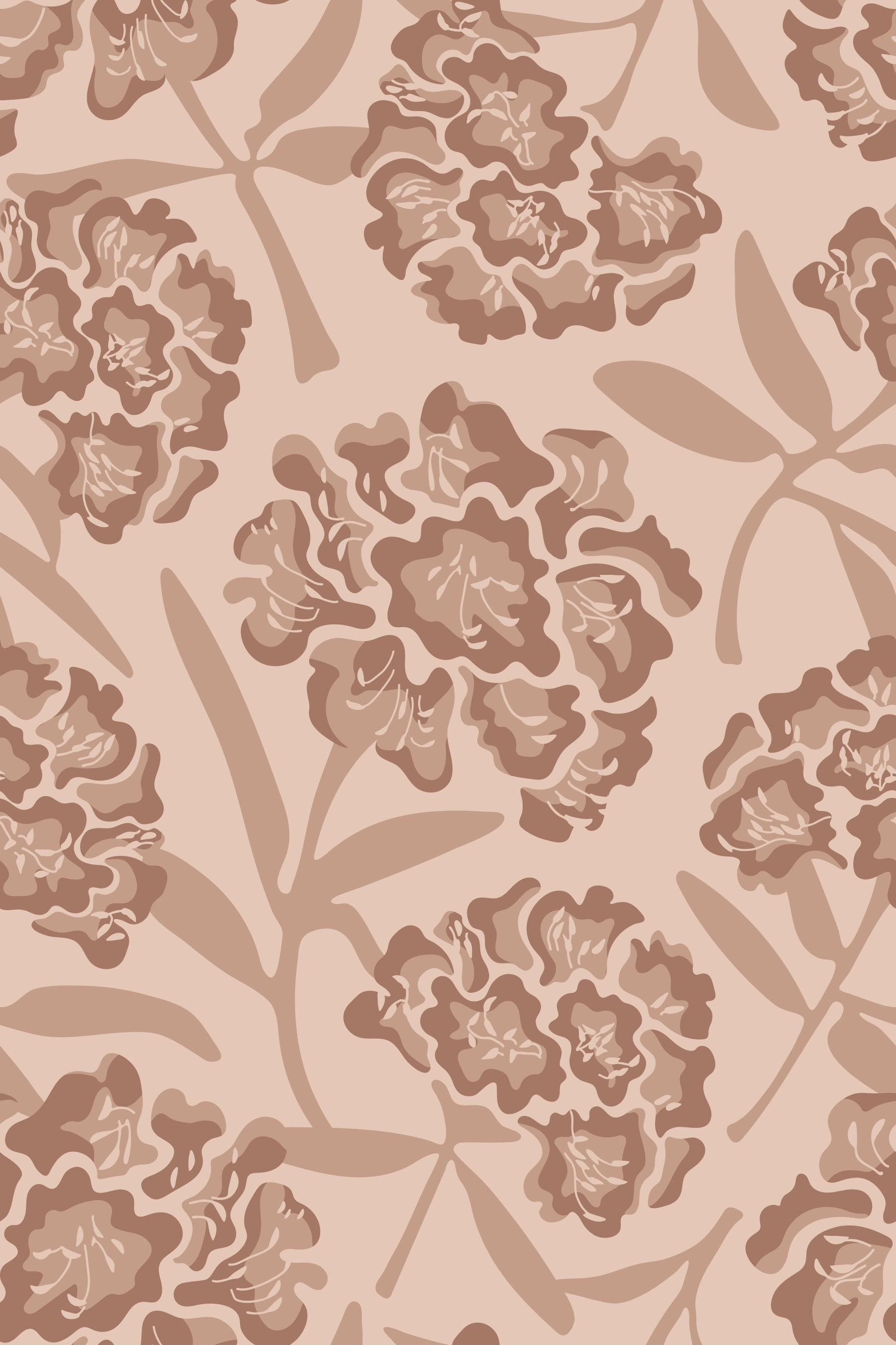 Indulge in the warmth and serene beauty of this wallpaper, featuring a captivating retro floral design. Stylized rhododendrons in muted Beige and Mocha Mousse Brown on a Cream Tan background create a sophisticated and calming aesthetic. The organic shapes and subtle color variations evoke a sense of vintage yet modern charm, perfect for adding a touch of understated elegance to any room. This wallpaper's neutral palette will also blend seamlessly with various interior design styles. This pattern design is also available in Other Colourways too! Original wallpaper pattern design by Jackie Tahara of UnBlink Studio.