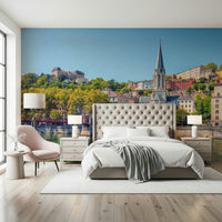 Transform your interior with this captivating wallpaper for walls depicting the city of Lyon. The image captures the city’s iconic architecture along a riverfront setting. Buildings in warm colours cascade down a hillside, contrasted by the cool greens and blues of the river. Perfect for creating a focal point in your living room or dining area, this wallpaper brings a touch of French elegance to your home. It works especially well in spaces where you want to create a relaxing and sophisticated atmosphere, like the bedroom, library, or home office. Let this wallpaper transport you to the banks of the Rhône.
