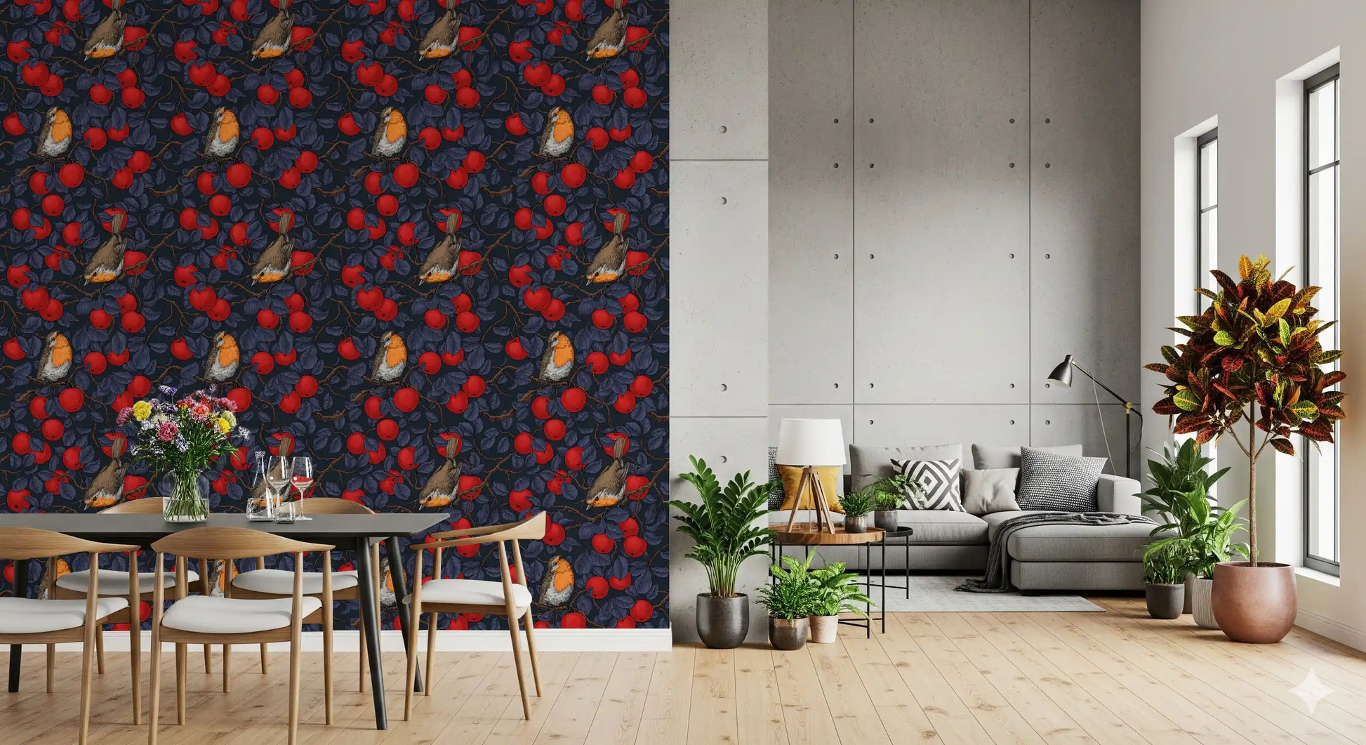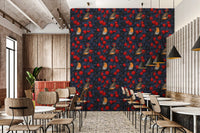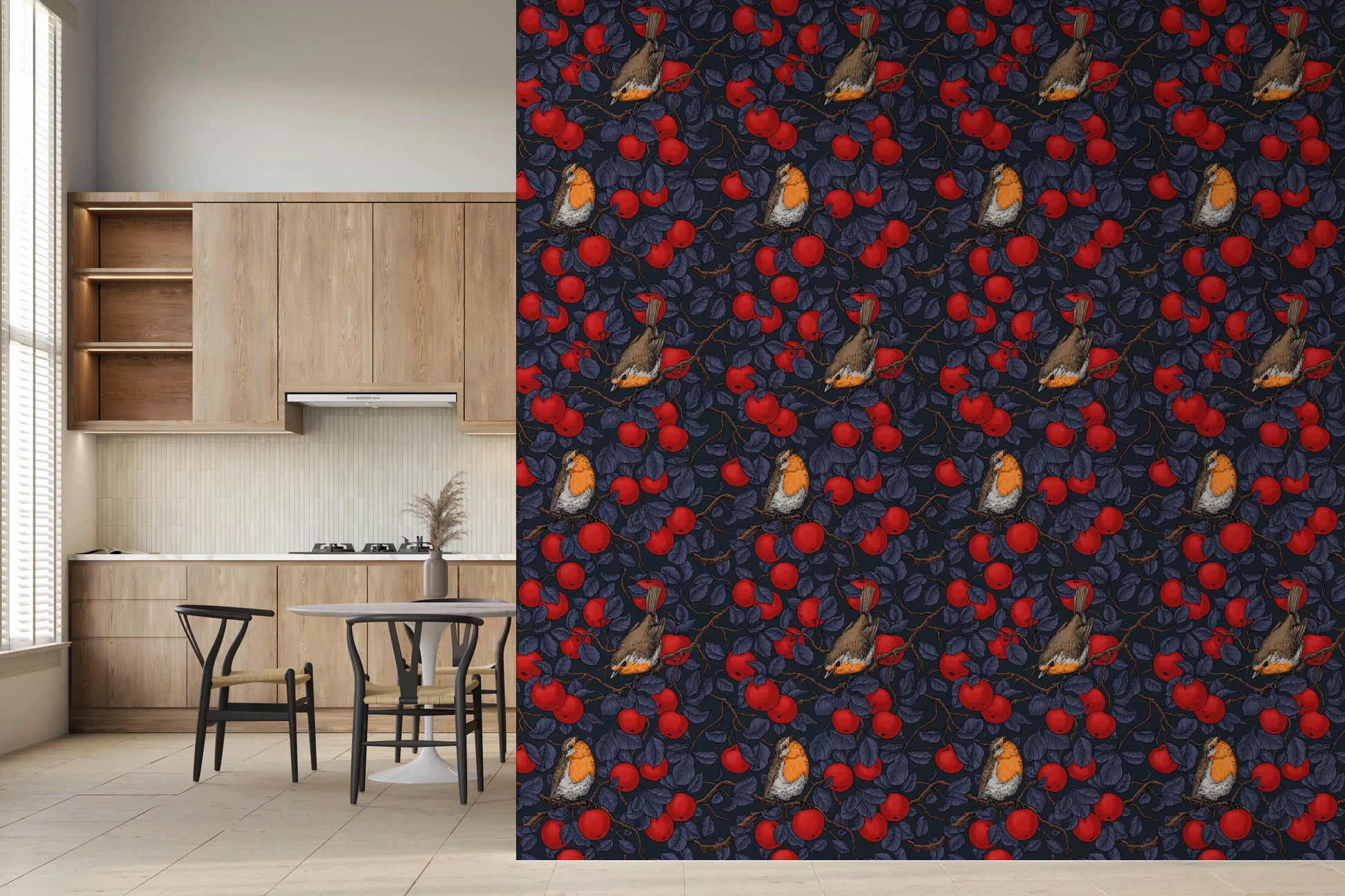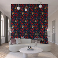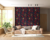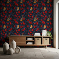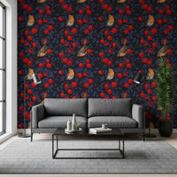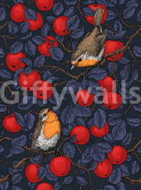 Robins in the apple tree/blue and red Wallpaper⁠