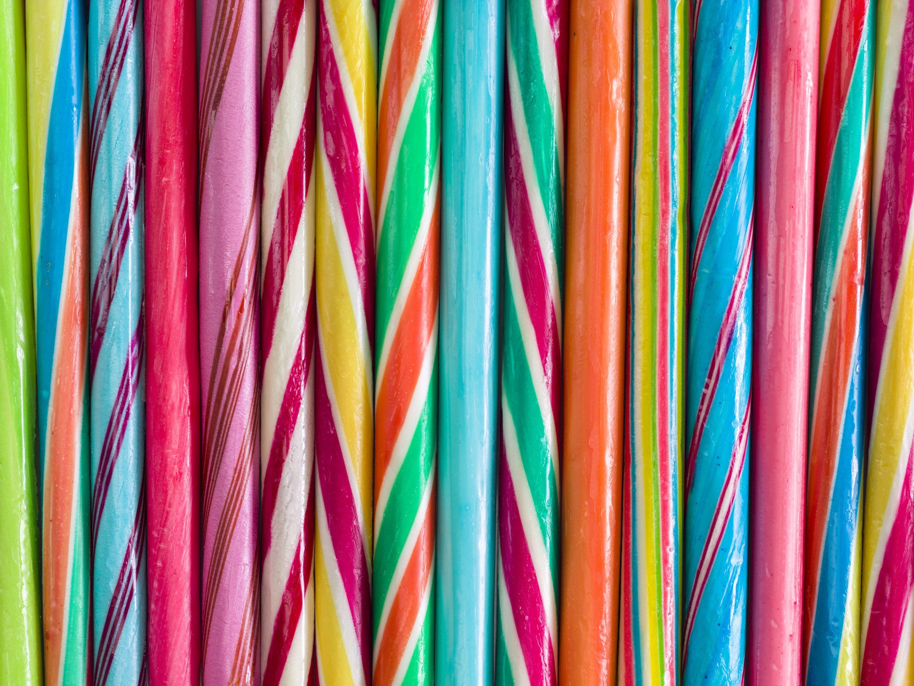 Fun and vibrant rock sweets wall mural for a sweet vibe