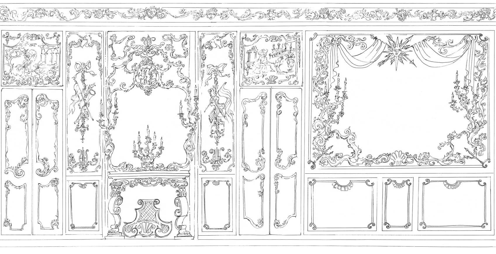 Rococo ornate wall panel design wallpaper for luxury decor