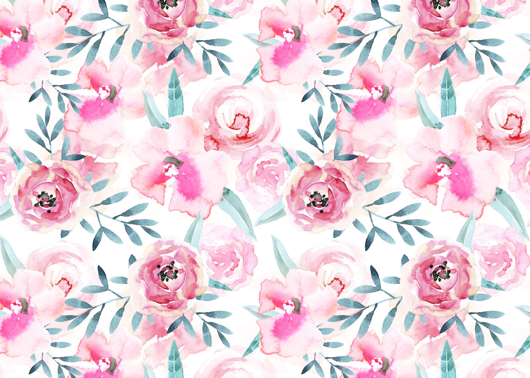 Wall mural with rosy watercolor blooms.