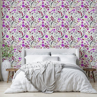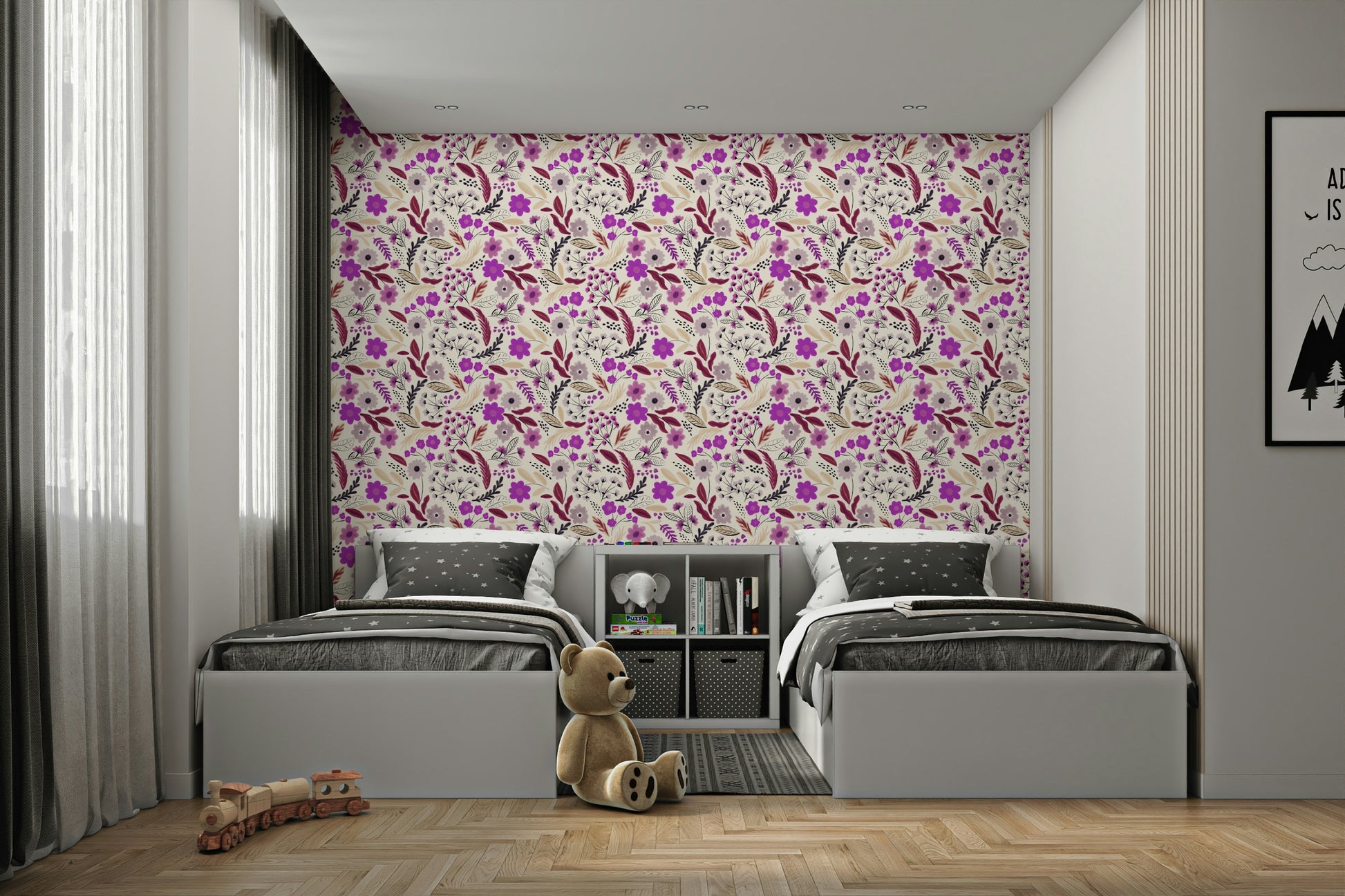 Embrace understated elegance with this wallpaper, featuring a captivating array of hand-painted rose-toned flowers and foliage. The design evokes the charm of a rustic garden, captured in soft, earthy hues of mauve, dusty rose, and terracotta. Subtle variations in color create depth and texture, while the organic shapes and hand-painted style add warmth and character. The slightly abstract floral motifs blend effortlessly with the delicate line work of the leaves and stems. This wallpaper is perfect for adding a touch of romantic charm and a tranquil atmosphere to a variety of spaces, from bedrooms to living rooms.