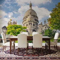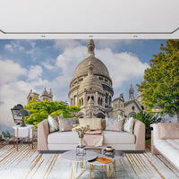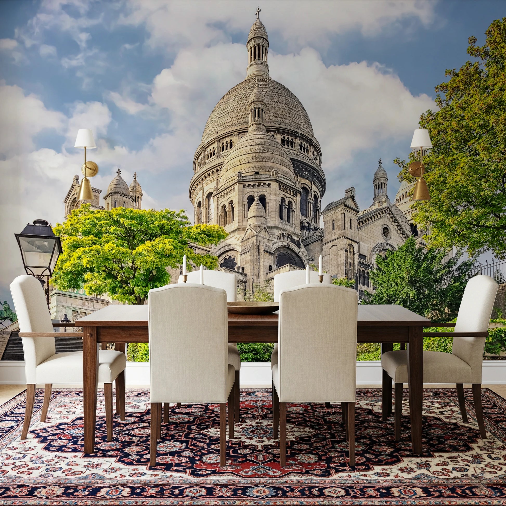 Transform your living spaces with the timeless elegance of this captivating basilica design. This striking wallpaper for walls features the Sacré-Cœur against a backdrop of a gentle blue sky, infusing any room with a sense of grandeur. Its intricate details and soft colour palette of stone, green, and sky blue work beautifully in a living room, hallway, or dining area. This wallpaper introduces architectural interest, enhancing the walls with a classic touch. The design brings a blend of history and tranquility into your home.