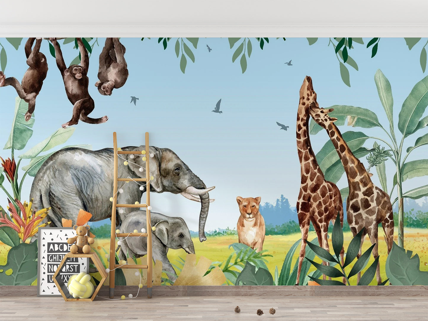With our African safari wallpaper murals, home improvement takes on a new meaning. These feature wall decorations are more than just a backdrop they're a focal point that infuses life into interior design. Ideal for anyone looking to create a playful and inspiring atmosphere, our murals are crafted for vibrant durability. Not only do they animate the space, but they also offer a visually stunning experience that sparks joy and creativity in kids' daily lives.