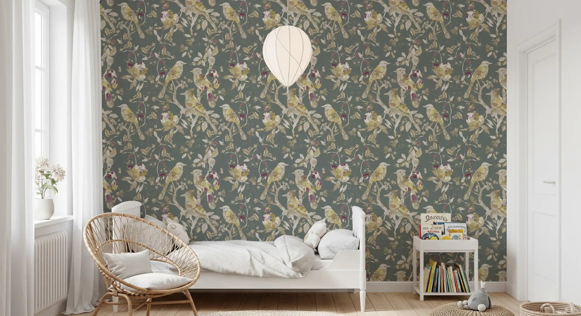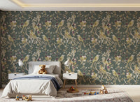 Sage Green Botanical Bird Wallpaper