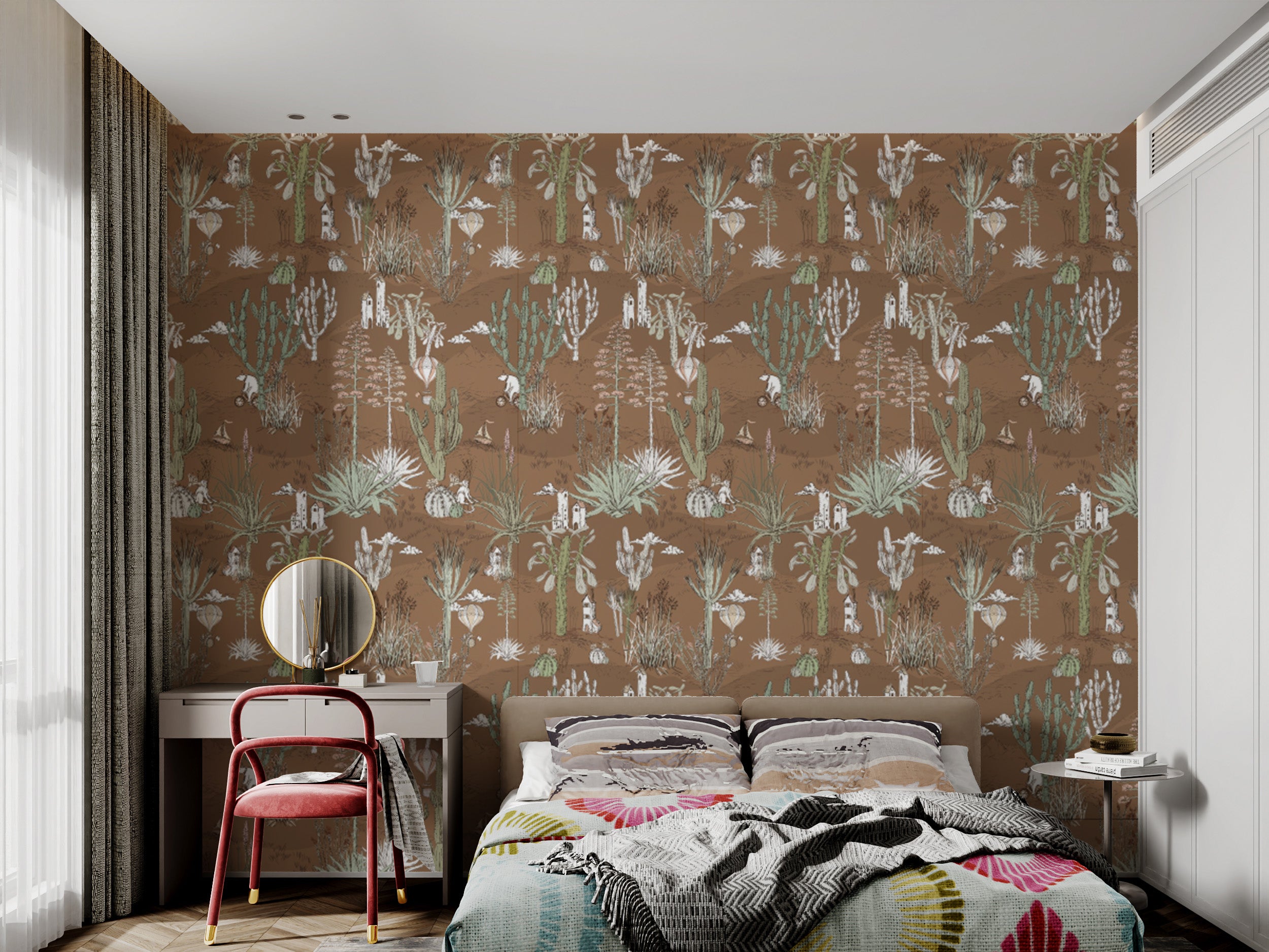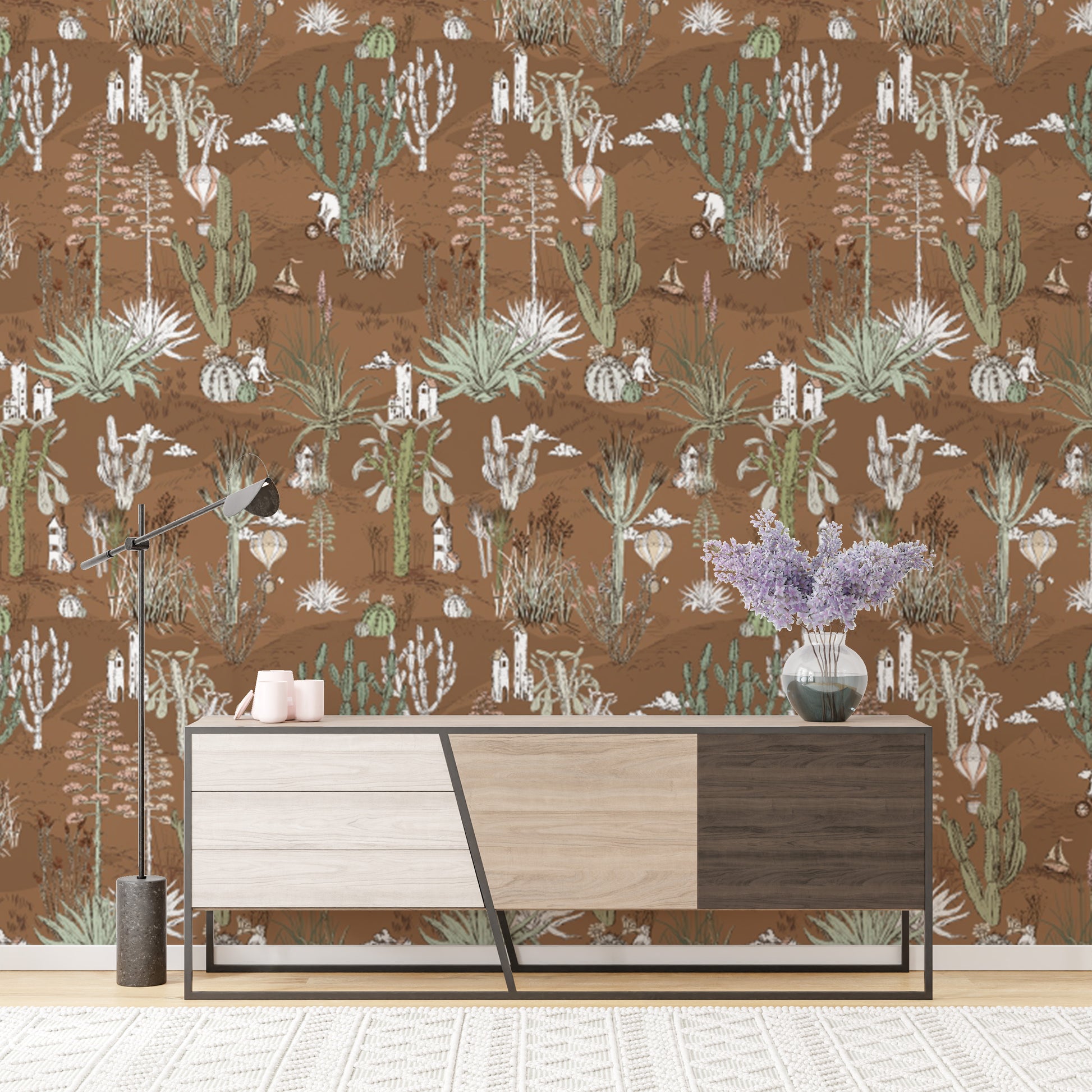 Desert-themed Saguaro Serenade wallpaper for chic interiors.