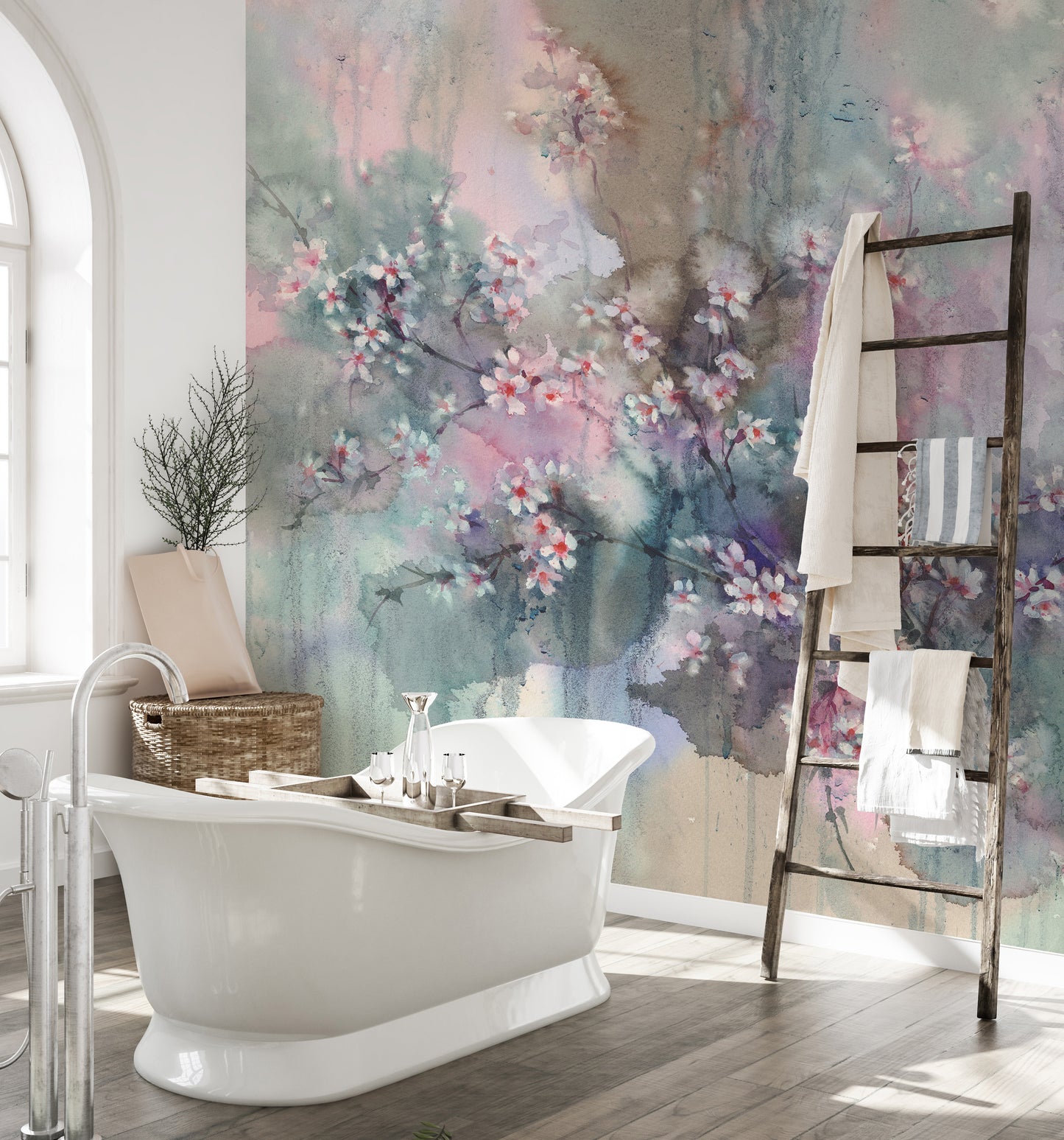 Sakura Watercolor Flower Wallpaper Wall Murals - Giffywalls
