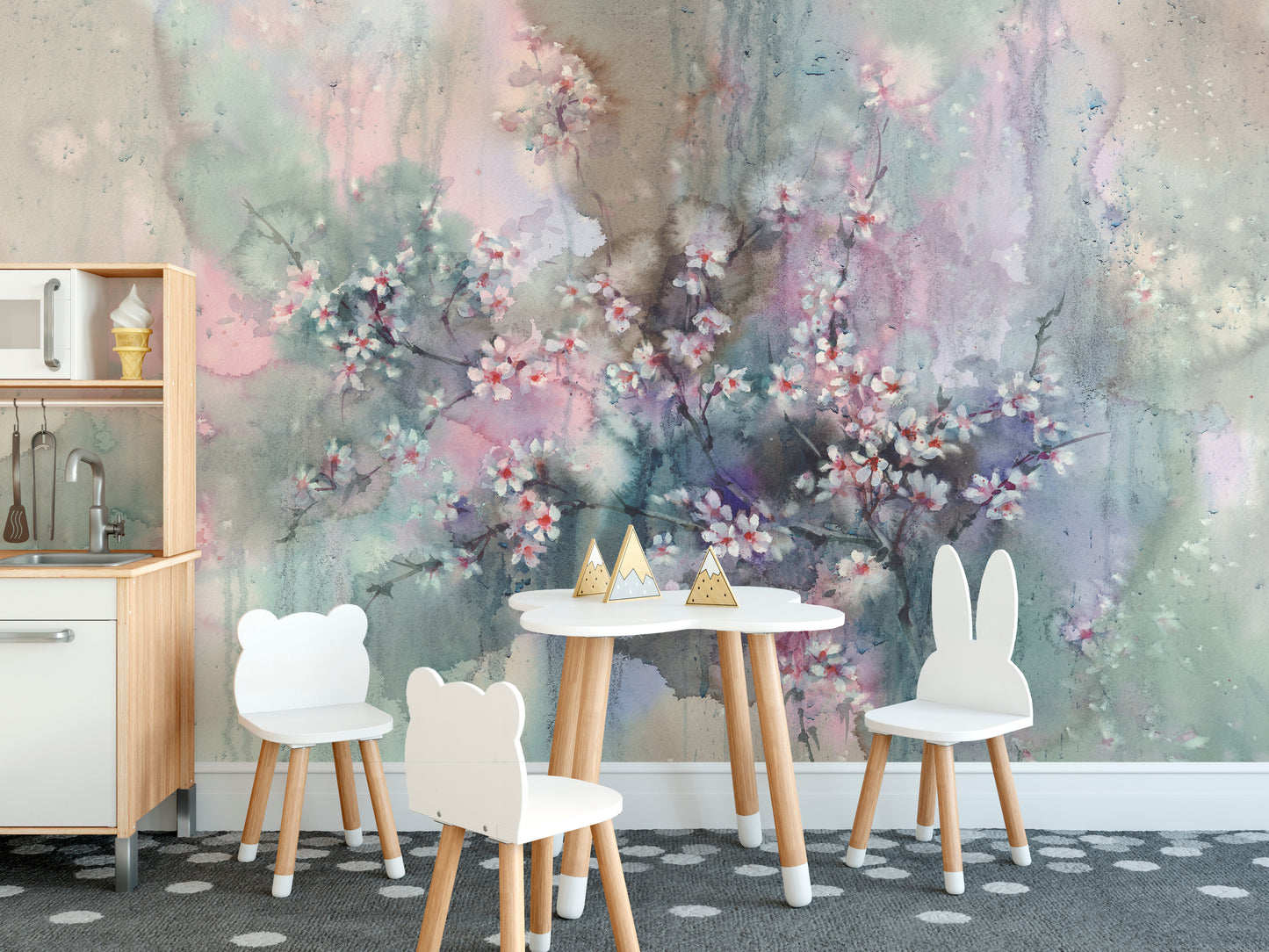 Sakura Watercolor Flower Wallpaper Wall Murals